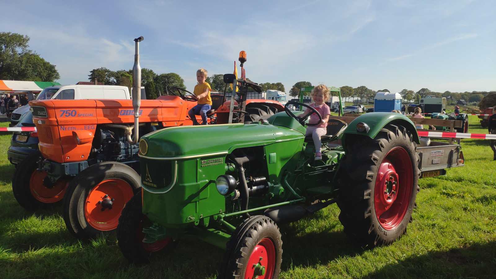 14 september: Op zaterdag hebben we van alles gedaan. In Rhoon was er een historische landbouwdag waar we veel tractoren konden zien, er was een springkussen, paarden en we hebben parachutisten zien landen.
