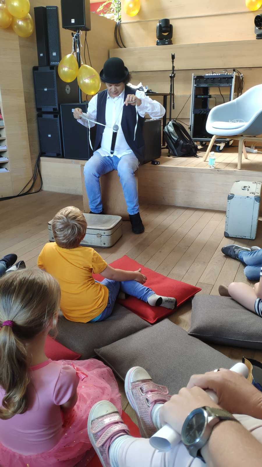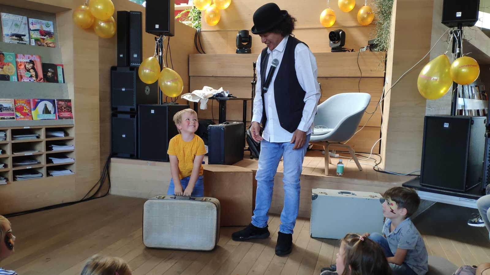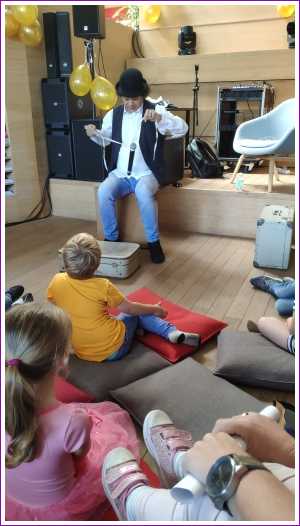 Daarna zijn we ook nog in Barendrecht naar theater 't Kruispunt geweest dat 25 jaar bestaat. Hier was een optreden van Sita die Doornroosje was, we hebben een meet en greet gehad met Elmo, we hebben gekleurd en we hebben Hakim gezien. Ik mocht zelfs weer mee doen. Toen we buiten kwamen was VOF de Kunst aan het optreden, die ken ik niet maar papa en mama wel..........