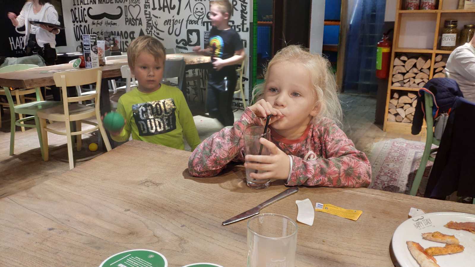 2 oktober: Vandaag na schooltijd kwam Fien mee naar ons huis om te spelen. We zijn eind van de middag ook nog geweest kijken op de bouw en hebben daar walnoten gezocht. Daarna zijn we met papa gaan eten bij Happy Italy in Hendrik Ido Ambacht. Hier konden we lekker binnen spelen omdat het buiten regende........
