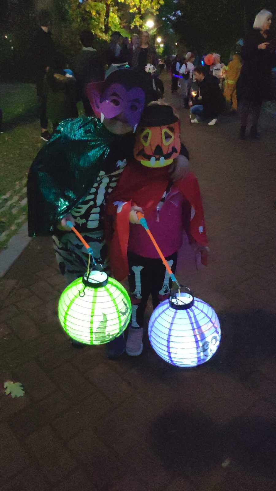 's-avonds was het echter veel leuker, toen hebben we in Barendrecht bij de oranjespeeltuin meegelopen aan een Halloweentocht. Ik was wel halverwege papa en mama kwijt omdat ik mijn eigen pad koos. Maar gelukkig kwam papa mij zoeken en heeft hij me weer gevonden. Volgende keer blijf ik toch maar even in de buurt........