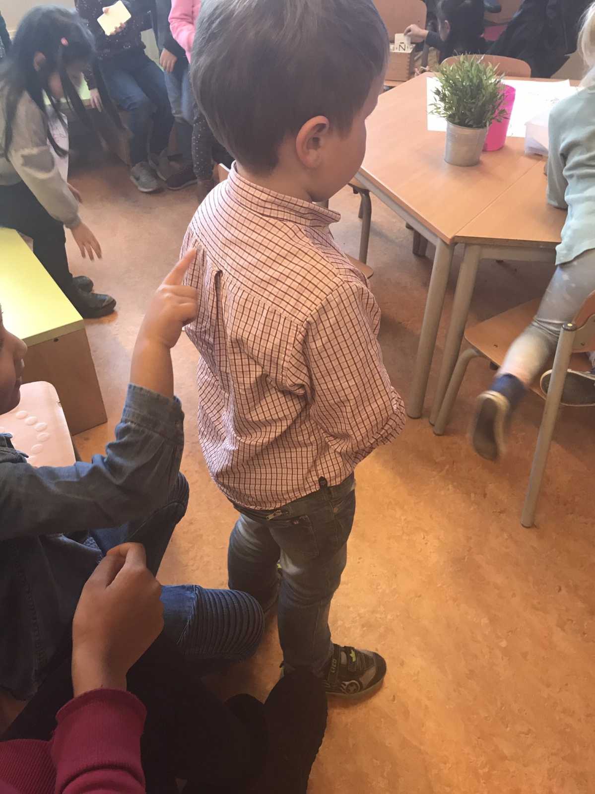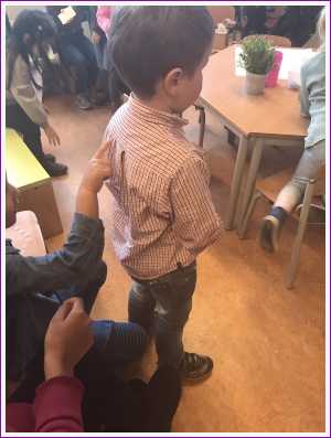 10 januari: De bedoeling is natuurlijk dat ik de letter raad die ze op mijn rug schrijven, maar dat vind ik al moeilijk als het op een papiertje is.......