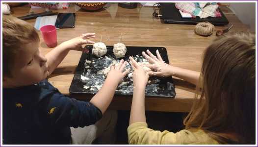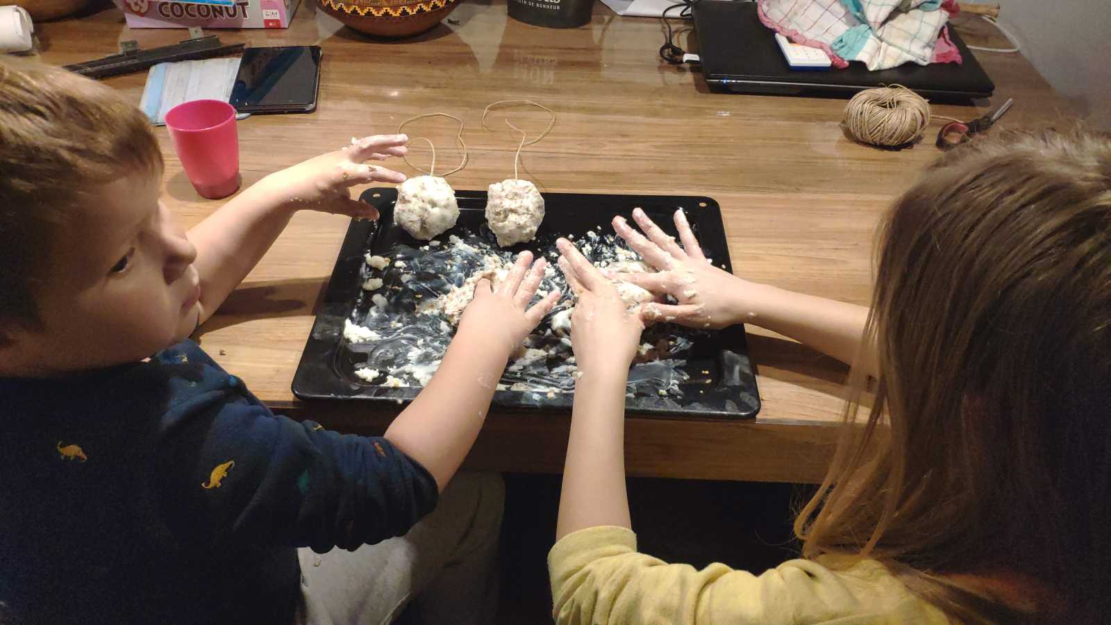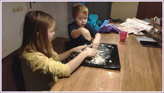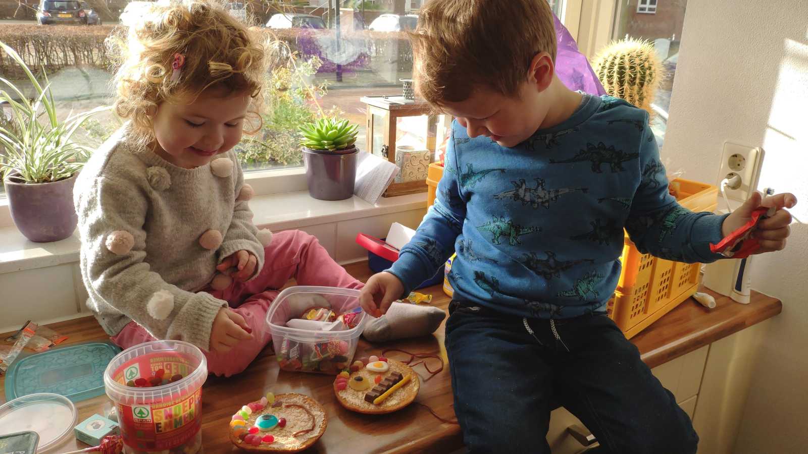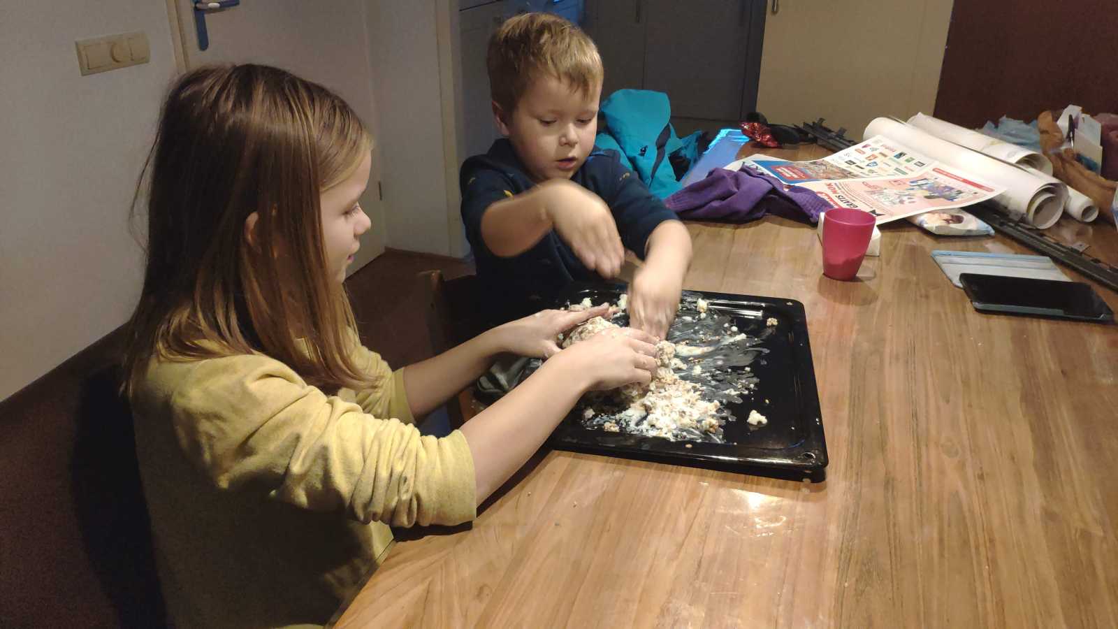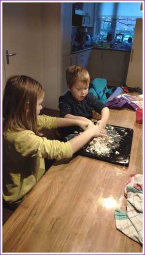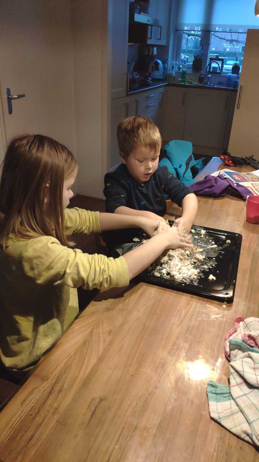 26 januari: We hebben thuis vetbollen gemaakt met papa en Anna. Lekker in die plakkerige plakzooi kneden, heerlijk.......