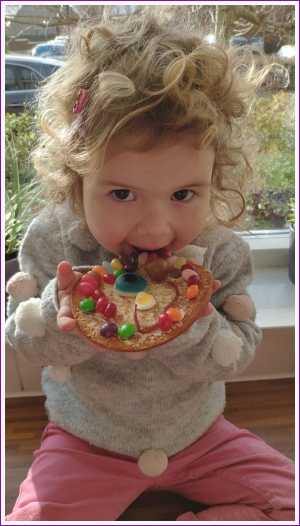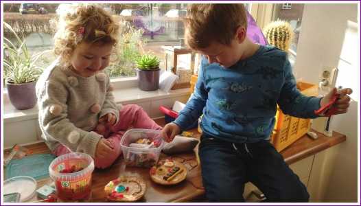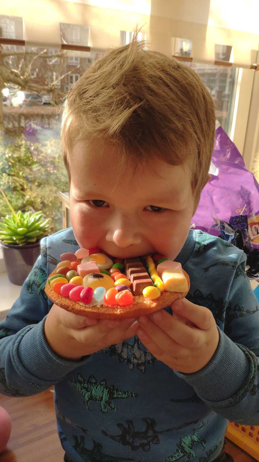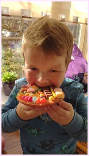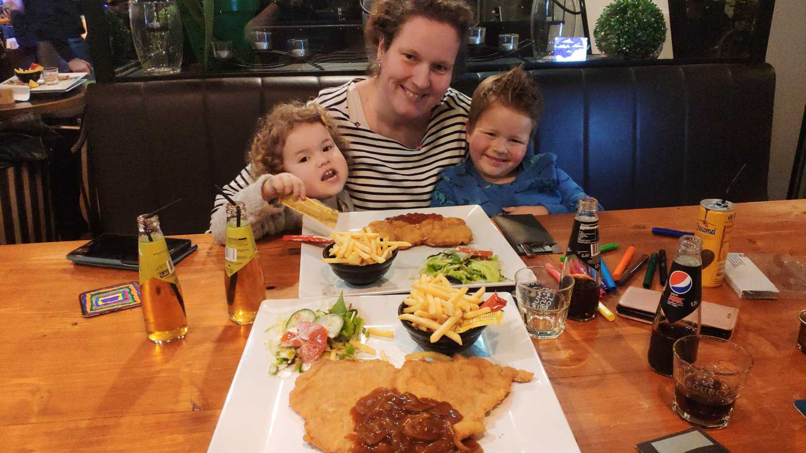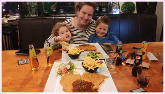 18 januari: Papa was vandaag weer op zijn werk. We hebben samen met mama eierkoeken versierd en aan het eind van de middag zijn we naar papa gereden en zijn we een schnitzel gaan eten.......
