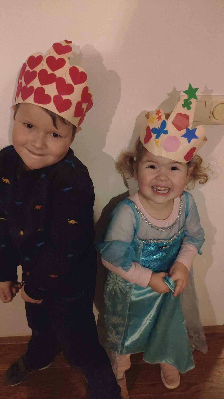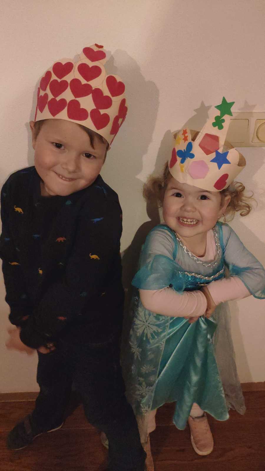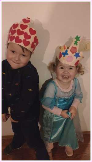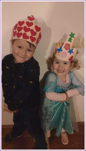 27 januari: Just another day in school, lekker verven. Thuis hebben we nog even geposeerd met een paar mooie kronen die we gemaakt hebben......