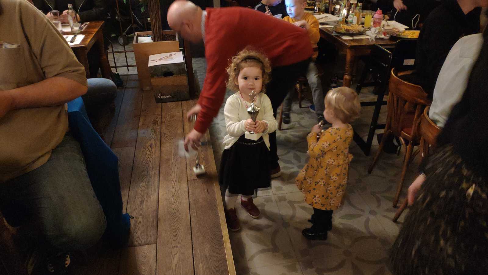 1 februari: Vandaag hadden we eerst lekker gezwommen in een heel mooi zwembad. Daarna zijn we gaan bowlen met andere kindjes. Daarna ben ik nog met papa vetbollen geweest maken en heb ik vlot gevaren. 's-avonds gingen we met de hele familie uit eten, dat waren veel mensen. Hier was ook de prijsuitreiking van het bowlen. Ik en Yfke hebben allebei een prijs gewonnen (net als ook alle andere kindjes). Het eten was wel lekker, maar veel hebben we niet op.......