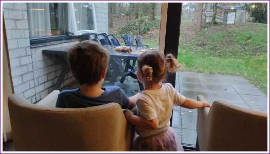 2 februari: Vandaag was de laatste dag van het familieweekend. We hebben samen ontbeten. Ook de eekhoorns ontbeten mee. Daarna hebben we een foto gemaakt met alle kinderen voor opa en oma. Maar hier had ik geen zin in, dus ik sta niet echt leuk op de foto. Vervolgens kreeg ik straf van papa en mama. Mama ging met Yfke zwemmen en ik mocht in eerste instantie niet mee. Een half uur later heb ik met papa een goed gesprek gehad en beloofd dat ik het beter ga doen. Daarna mocht ik ook nog even gaan zwemmen.