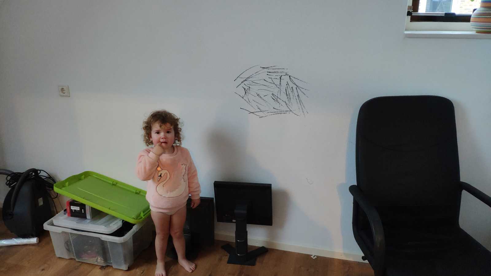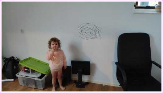 5 februari: Vandaag kwam na schooltijd Fien bij mij thuis spelen. Ik heb haar het hele huis laten zien, ook de zolder die nu bijna leeg is. Ik heb daar met een stift op de muur getekend. Toen papa daar achter kwam gaf ik Yfke de schuld en werd ik gesteund door Fien. Yfke wist zich geen houding te geven toen ze beschuldigd werd........