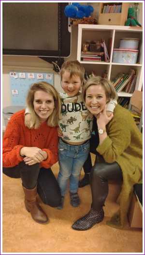 11 februari: Vandaag hadden we in de gymles yoga, dat is wel heel apart. 's-avonds zijn papa, mama en ik naar het tien minuten gesprek geweest. Omdat ik volgende week voor het laatst naar deze school ga ben ik nog maar even met de juffen op de foto geweest........
