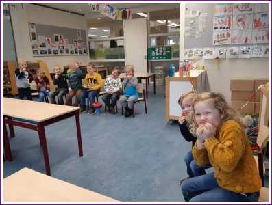 14 februari: Vandaag ben ik voor het eerst ggaan kennismaken met mijn nieuwe klas op de nieuwe school. Ik had me er een beetje druk om lopen maken, maar het viel harstikke mee, er zitten ook veel leuke kindjes in.........