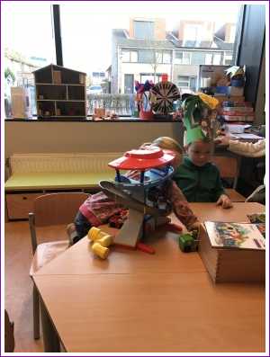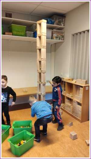 19 februari: Papa en Yfke mochten vandaag wat langer op school blijven kijken. Ik heb nog maar eens laten zien dat ik heel goed torens kan bouwen........