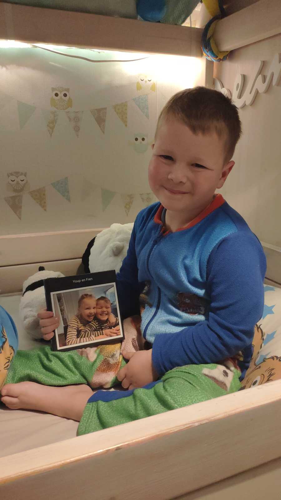 Voordat ik naar bed ging heb ik nog even gekeken naar het mooie fotoboekje dat ik van Fien heb gekregen met foto's van ons samen. Mama heeft 's-avonds de kaartjes afgemaakt die ik morgen mag tracteren op school omdat het dan mijn allerlaatste dat is op deze school.