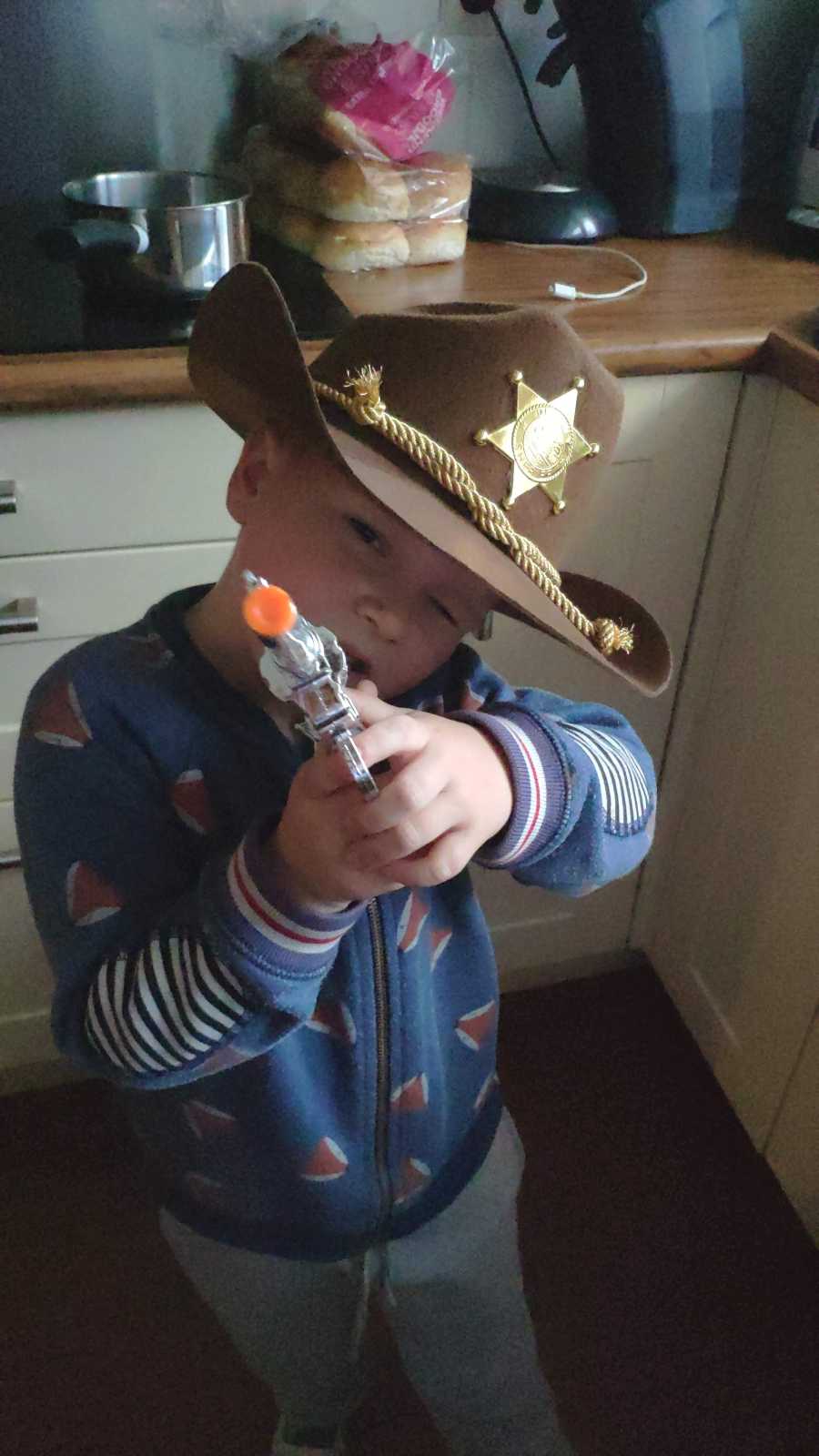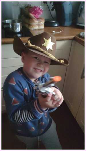 Eenmaal thuis heeft Youp ook nog even cowboy gespeeld.