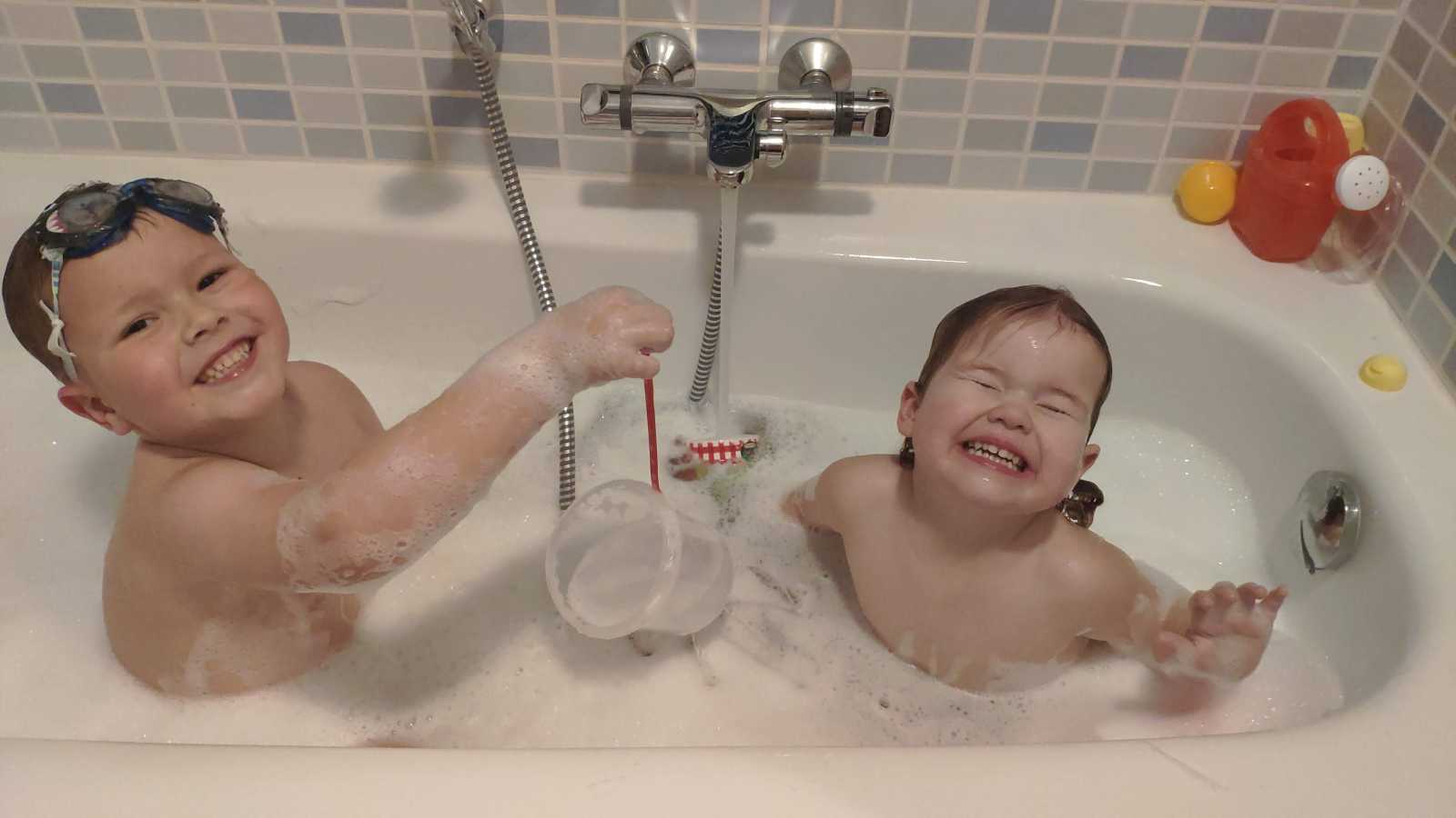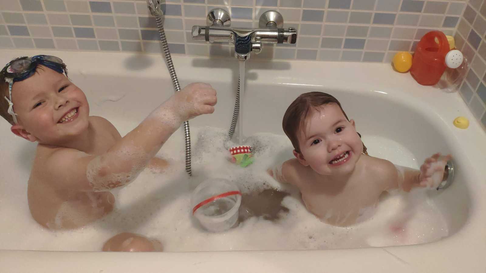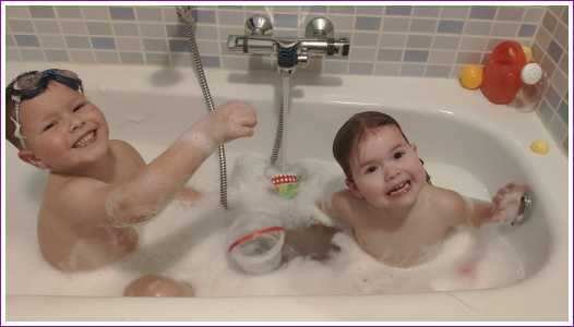 27 februari: Ik kon weer lekker met Fien spelen en we mochten ook weer samen in bad......
