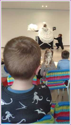 16 februari: Vandaag zijn we met papa naar ht theater geweest. We gingen naar Seamstraat Live in het Kruispunt. Yfke mocht ook voor de eerste keer mee naar het theater, en die vond het ook wel leuk........
