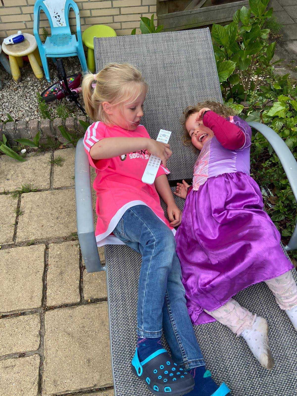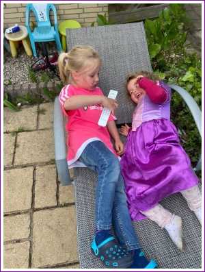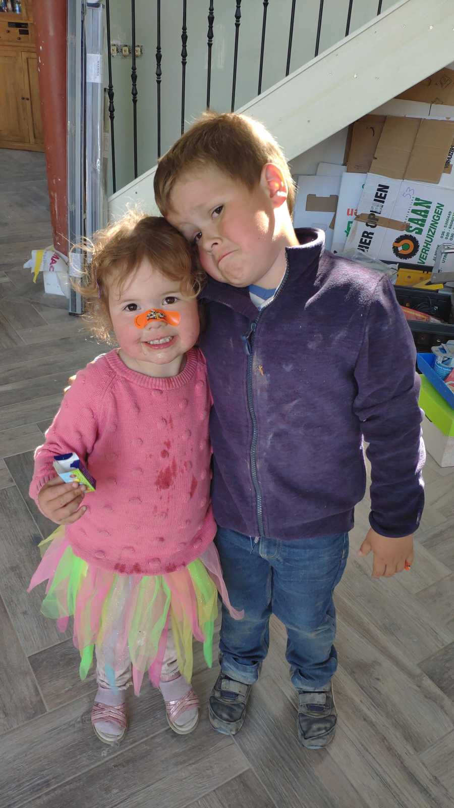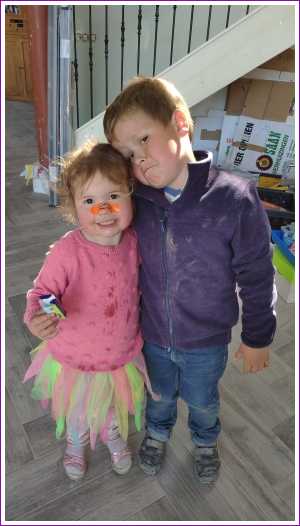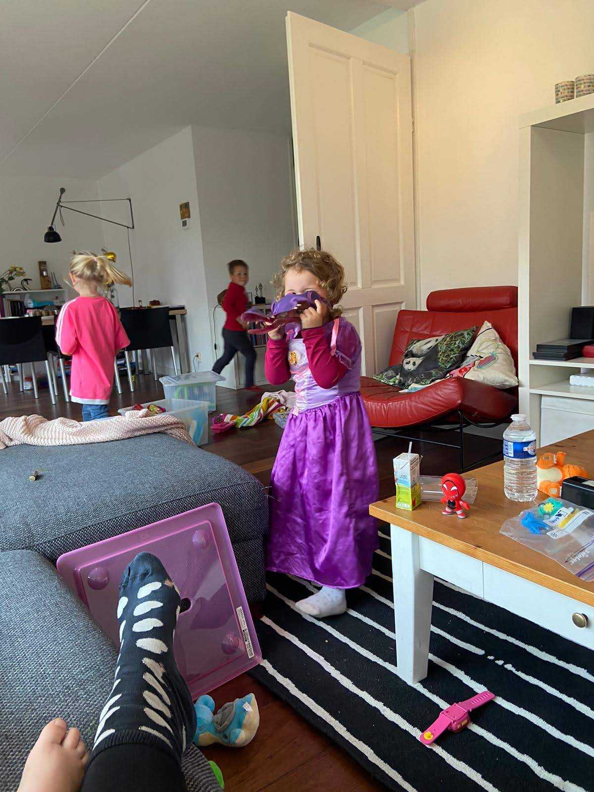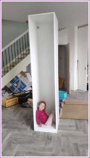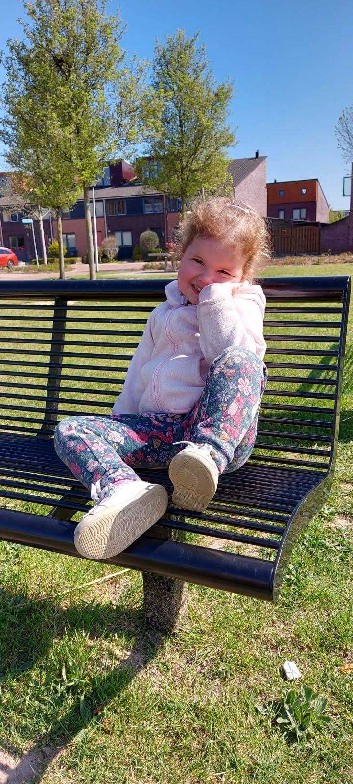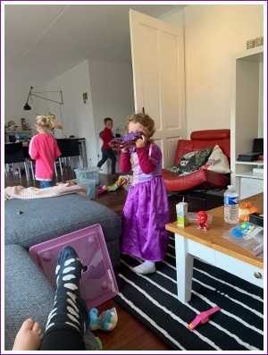 29 april: Yfke wilde even in een kast gaan zitten die papa aan het bouwen was. In de middag mochten we spelen bij Fien.........