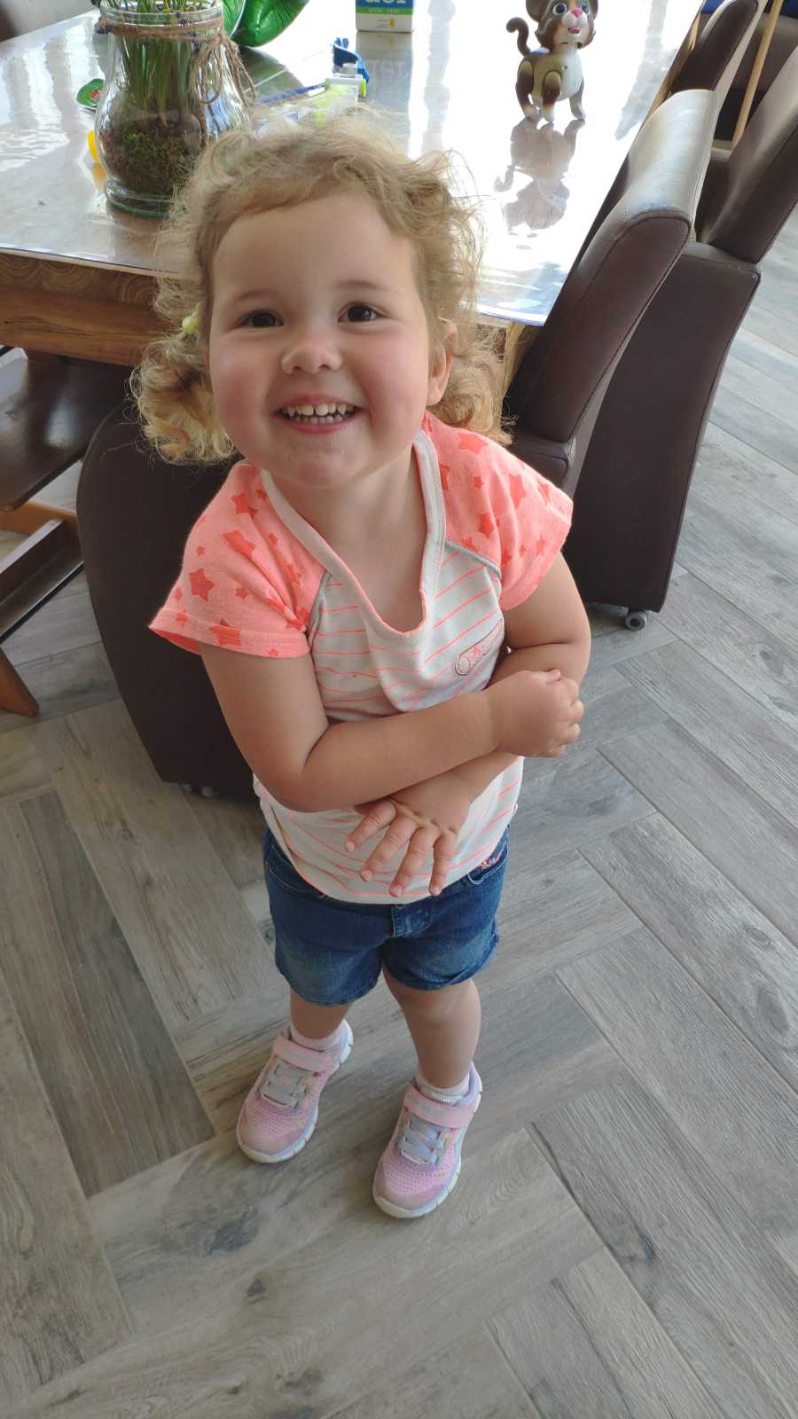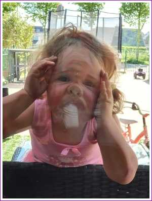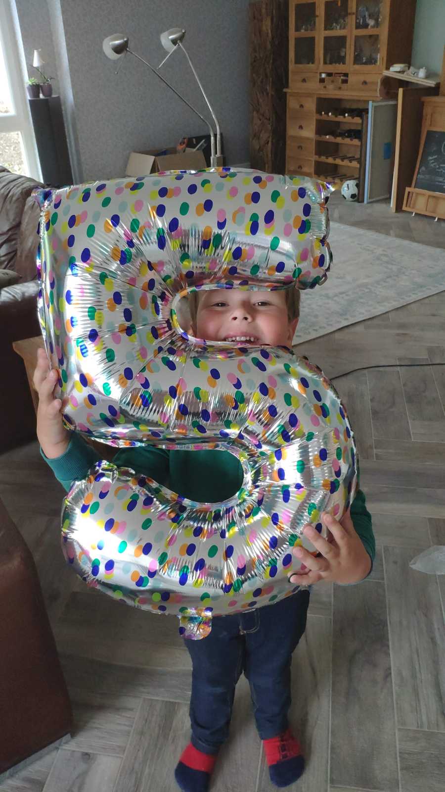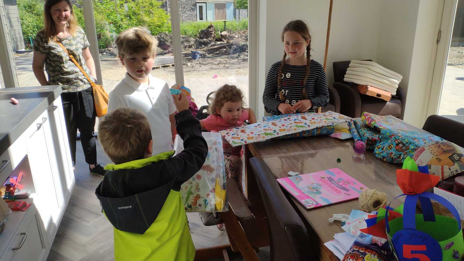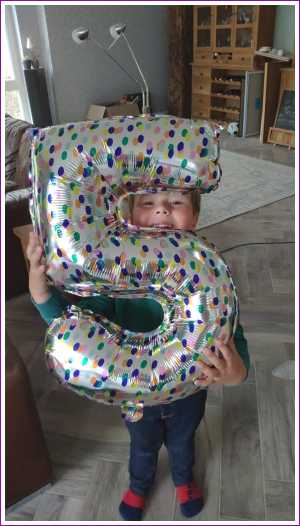 24 mei: Youp poseert nog even met de 5 van zijn verjaardag.......