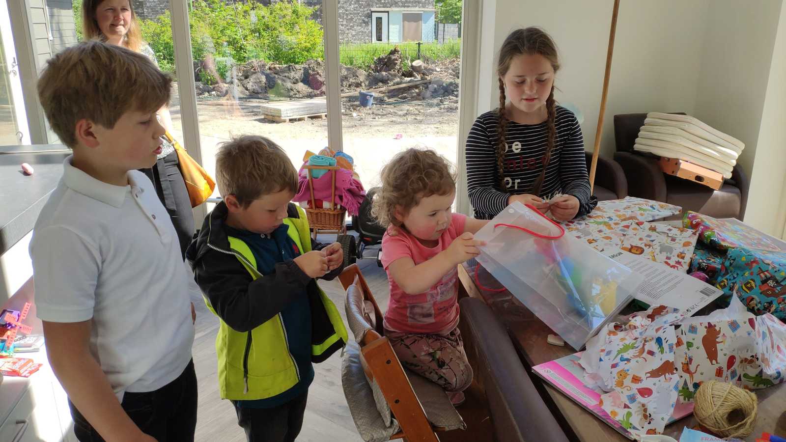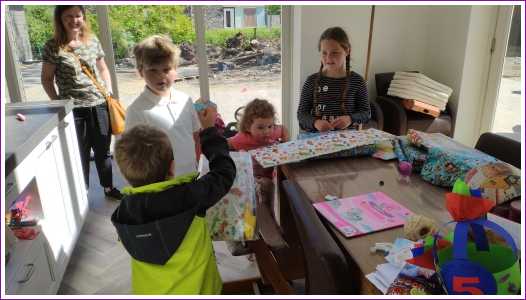 15 mei: Ik ben jarig vandaag, dus kom maar op met die cadeautjes. Onze oude buurkinderen kwamen ook nog langs.......