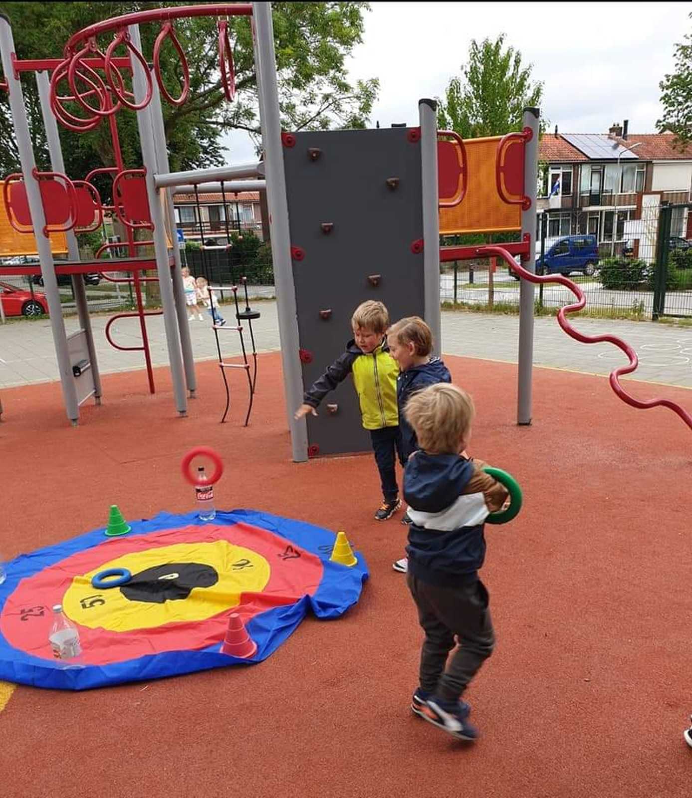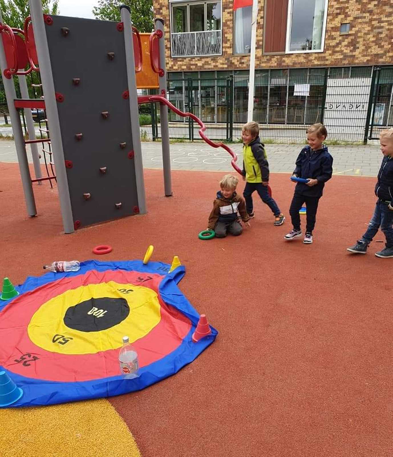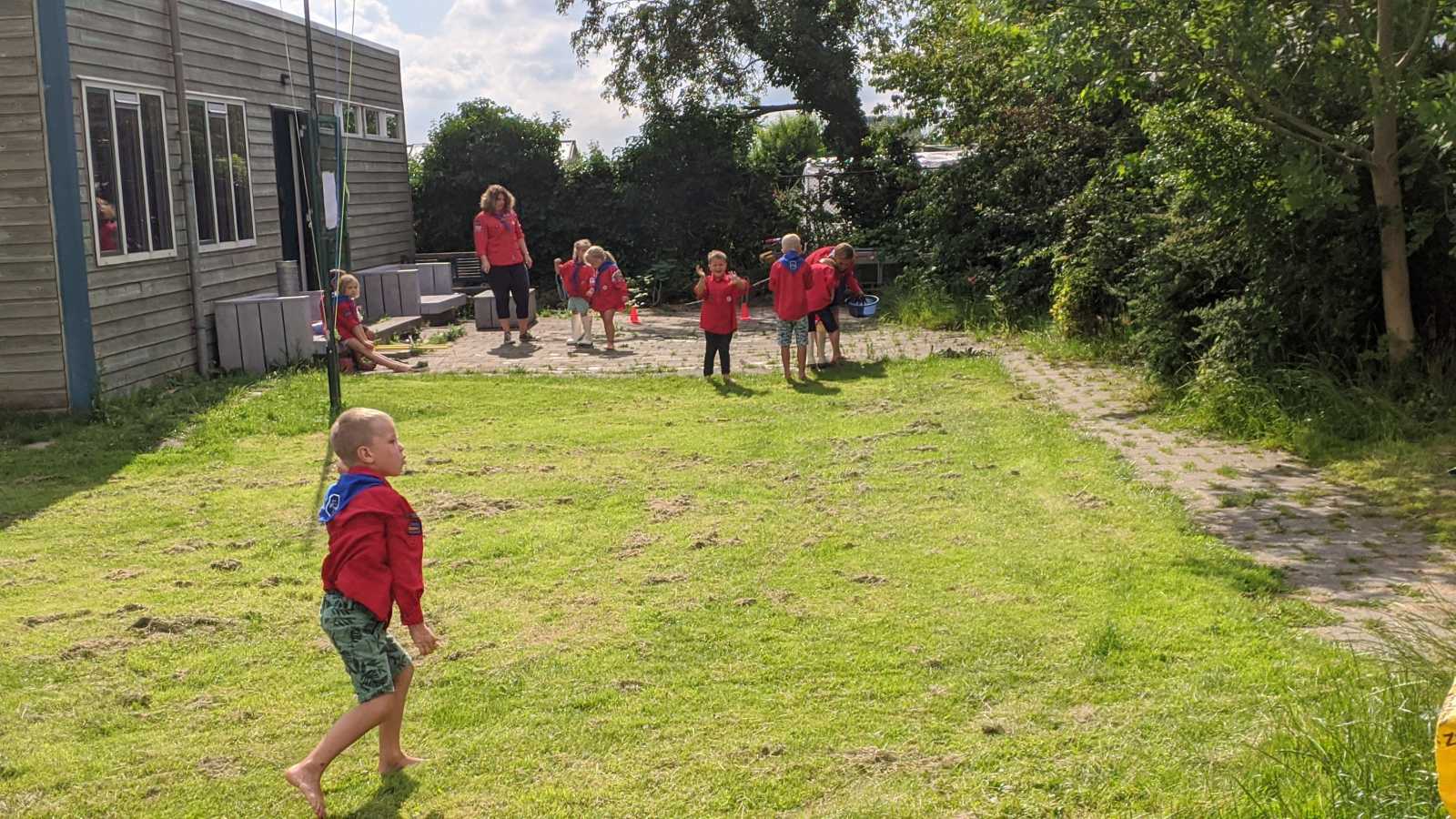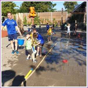 25 juni: Op school mochten we vandaag met water buiten spelen........