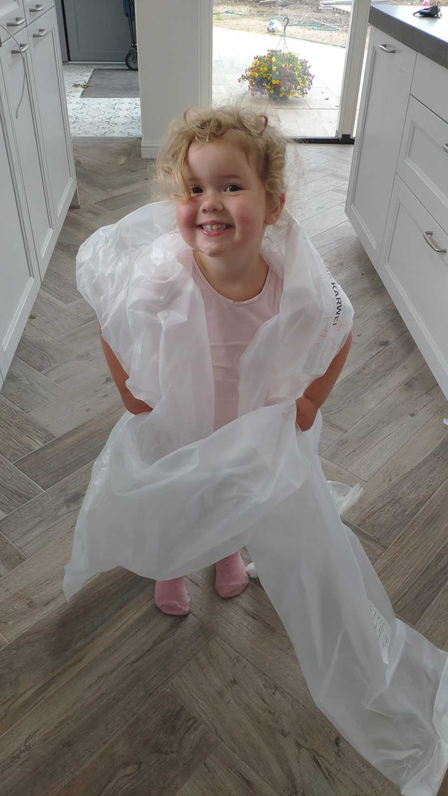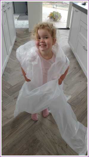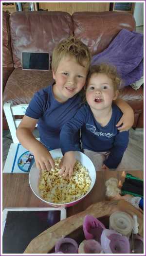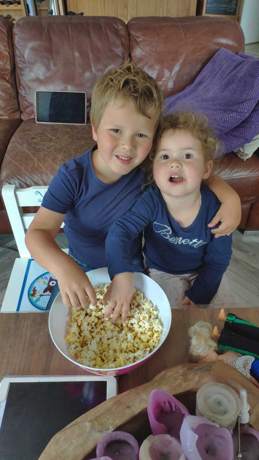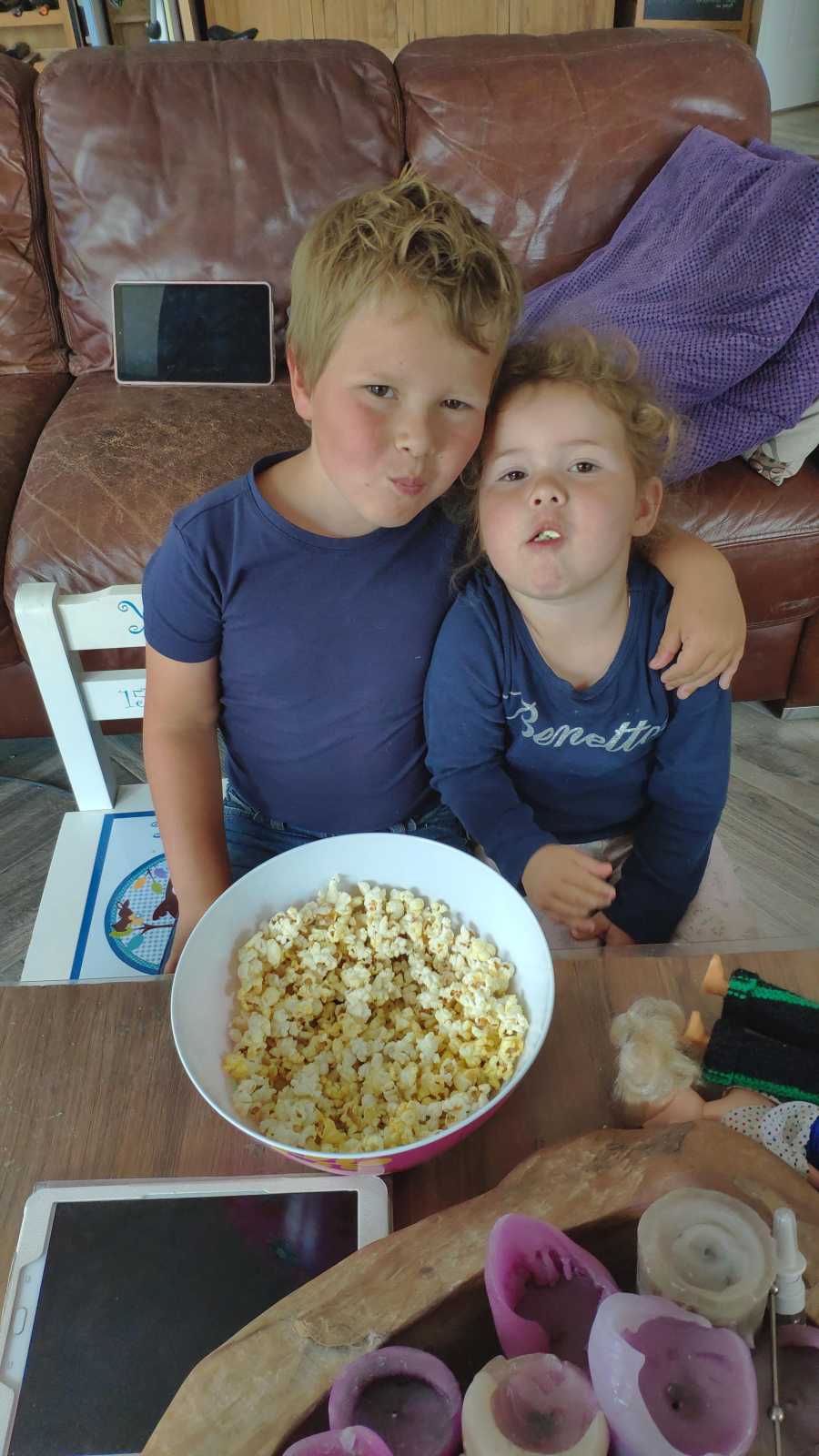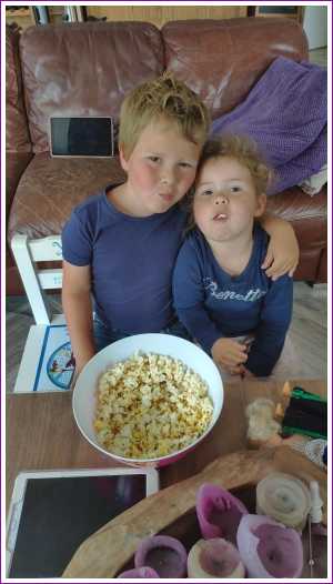 6 juni: We hebben vanmiddag film gekeken en popcorn gegeten. En Yfke heeft zichzelf verkleed als prinses........