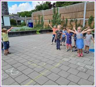 24 juni: Wederom lekker op school buiten spelen, ik zit nu ff onder de tafel........