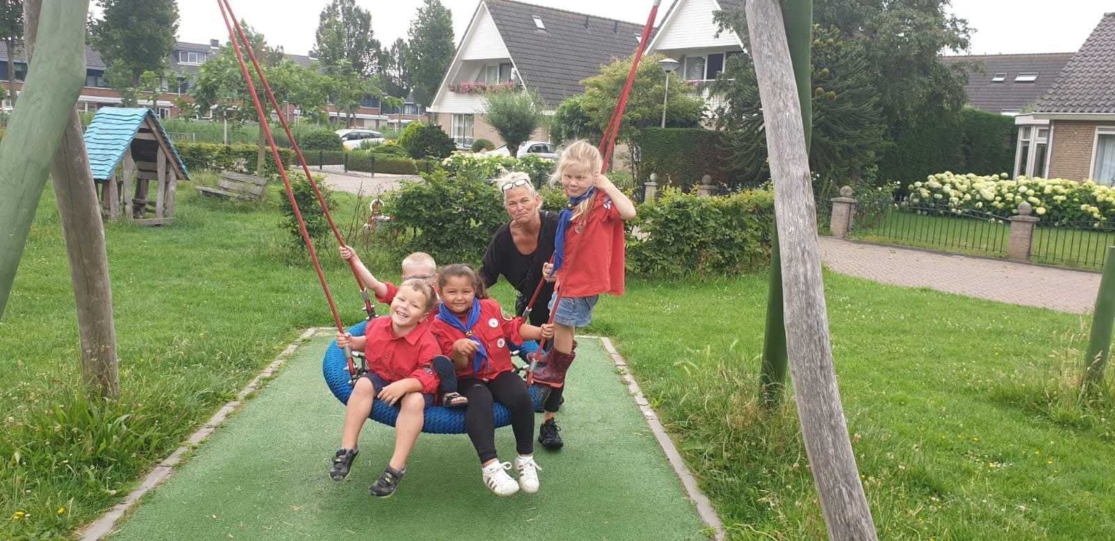 27 juni: Zaterdag is scoutingdag. Yfke reed ondertussen op mijn skelter rond........