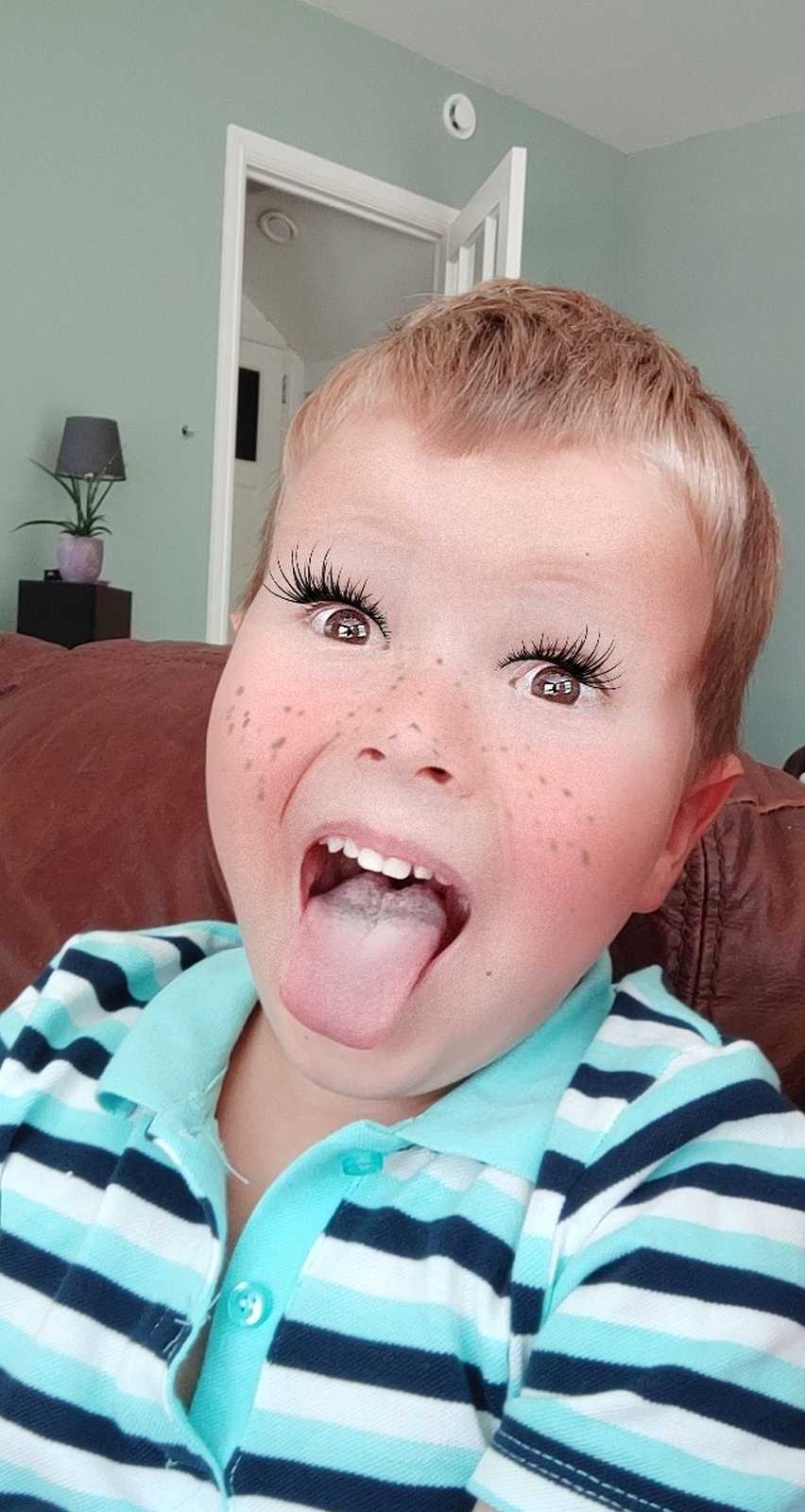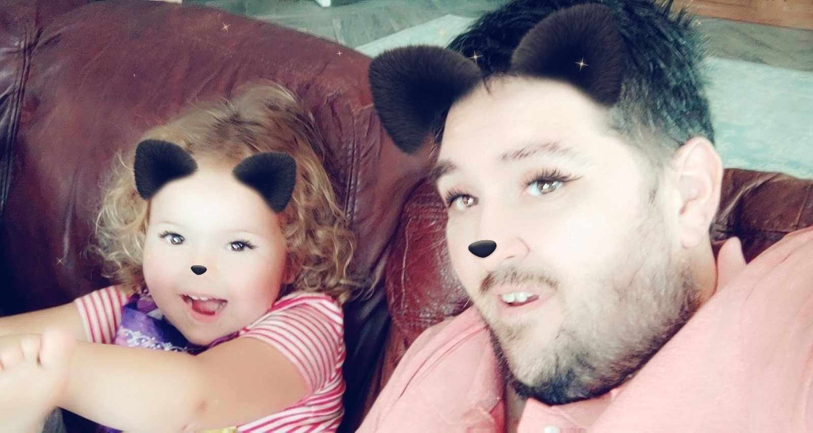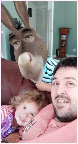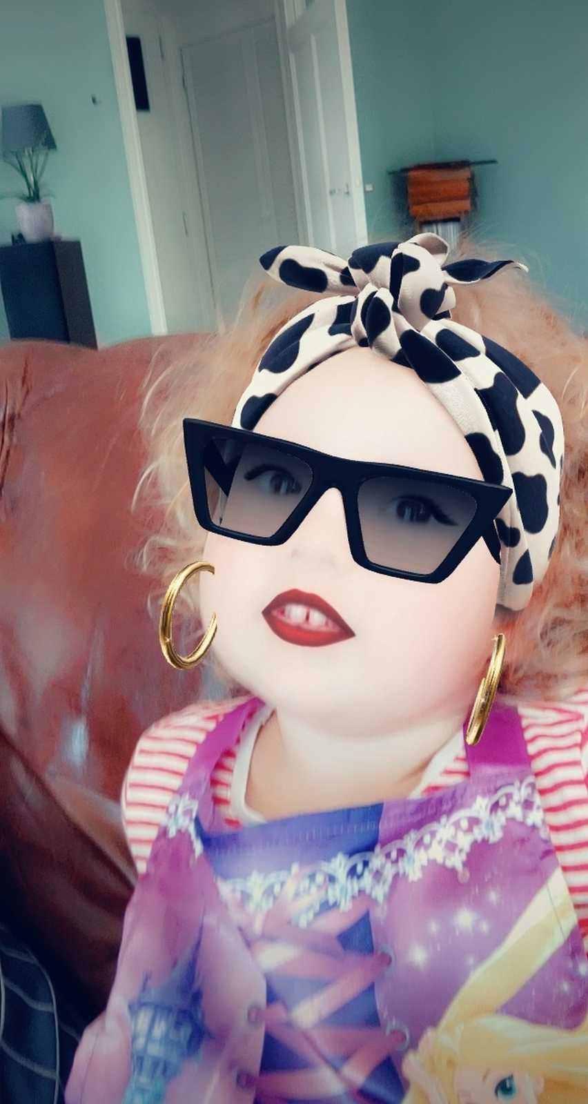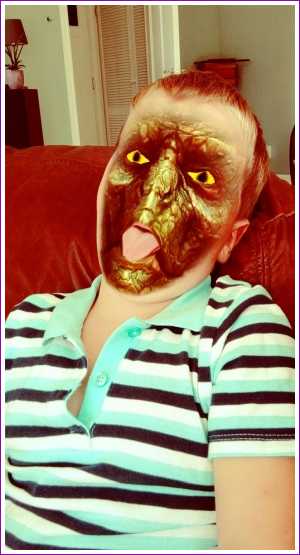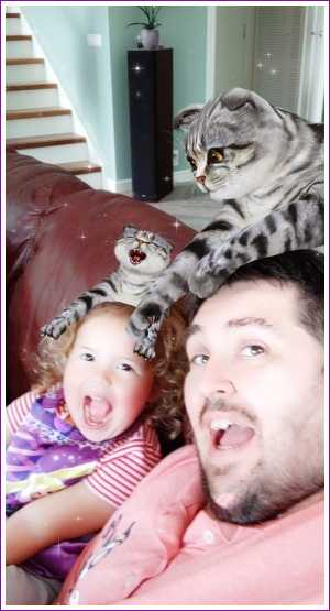 12 juli: Vandaag hebben we met papa op de bank met zijn telefoon allemaal leuke foto's gemaakt met Snapchat.........