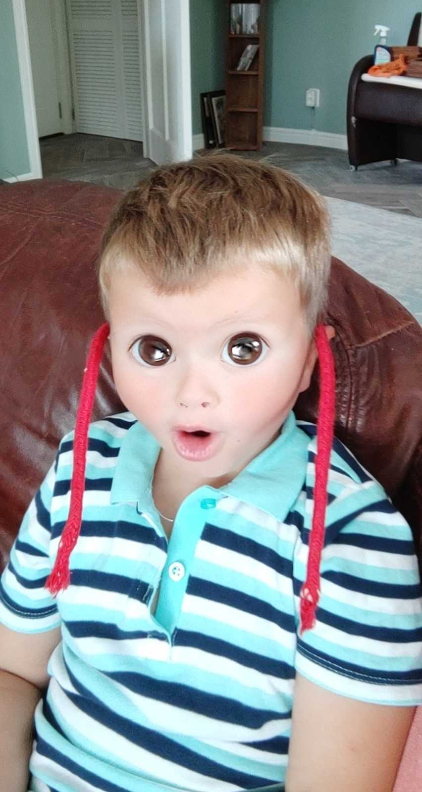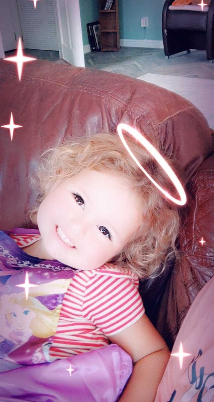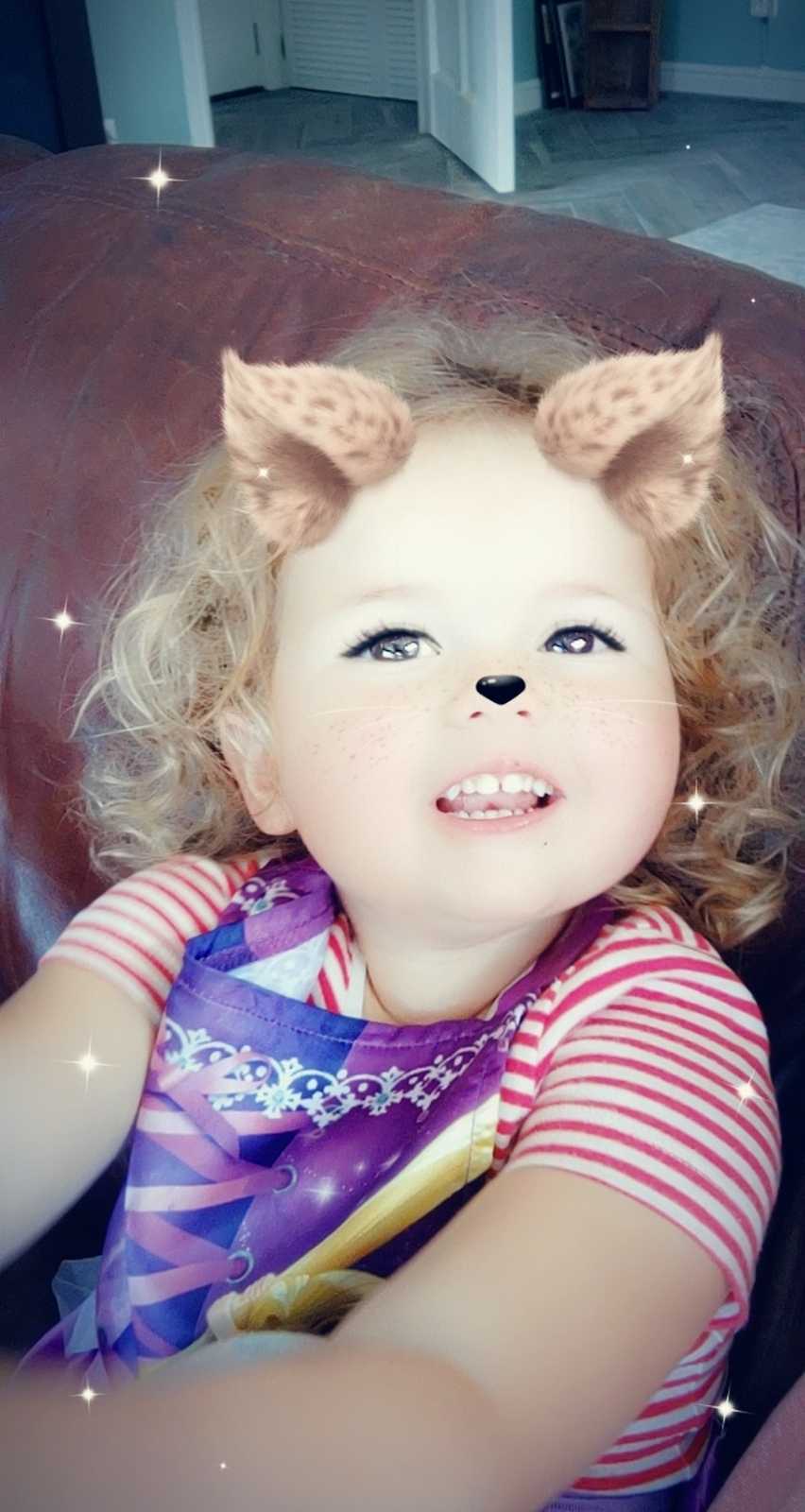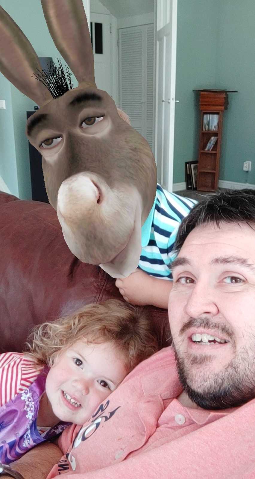 12 juli: Vandaag hebben we met papa op de bank met zijn telefoon allemaal leuke foto's gemaakt met Snapchat.........