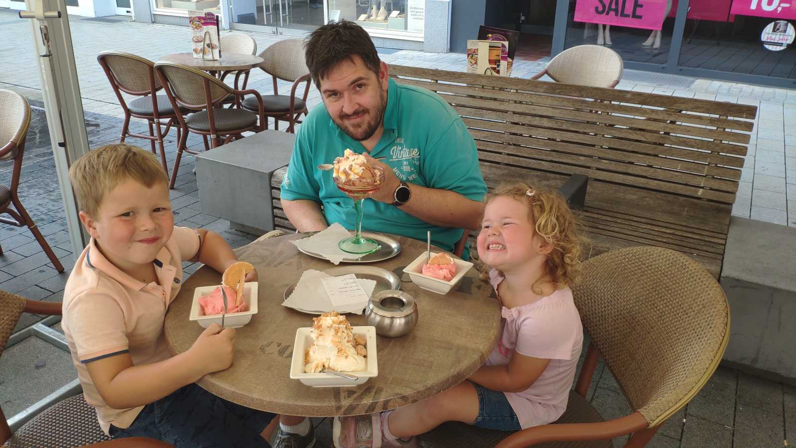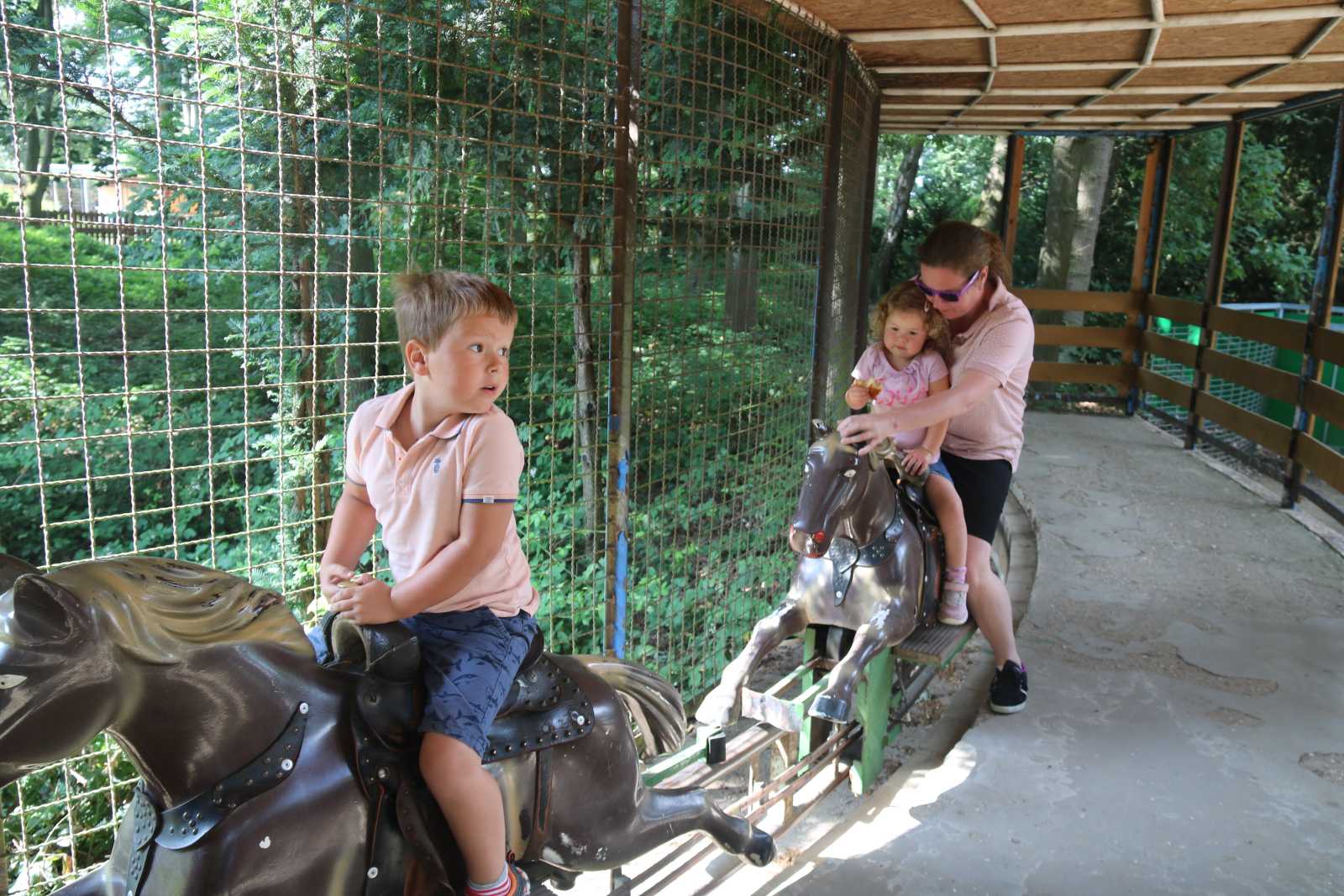 18 juli: We zijn een weekendje weg. Om te beginnen zijn we naar Duitsland gereden om naar Tierpark Brueggen te gaan. Behalve veel dieren was hier ook een grote speeltuin en een groot speelkussen. Daarna hebben we boodschappen gedaan. Toen zijn we doorgereden naar het hotel. Na het inchecken zijn we vlakbij het hotel naar circusdieren geweest kijken die daar stonden te grazen, en daarna zijn we lekker wat gaan eten. Na het eten hebben we ook nog een ijscoupe gegeten..........