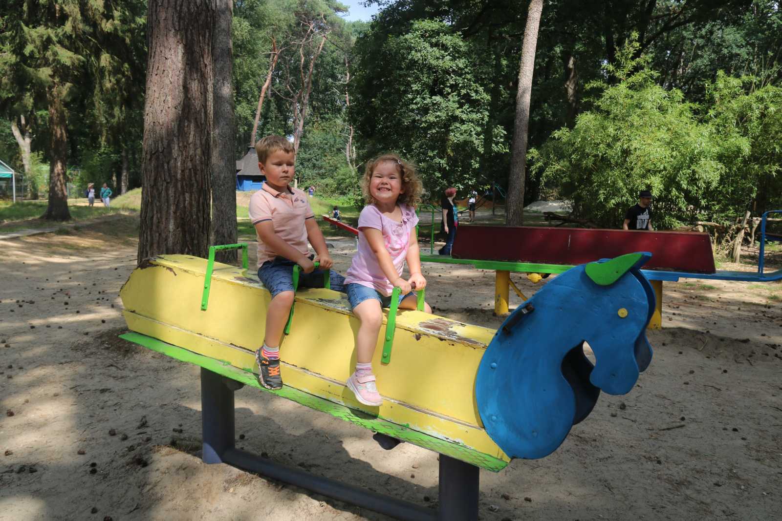 19 juli: Vanochtend zijn we opgestaan in het hotel en lekker gaan ontbijten. Daarna zijn we in een half uurtje naar pretpark Kalkar Wunderland gereden. Daar hebben we de hele dag in allerlei attracties gezeten, heel erg leuk allemaal. Er was zelfs een circus in dat park waar we naar een optreden konden gaan kijken. Na de voorstelling mochten we zelfs allebei op een kameel rijden. Na nog patatjes te hebben gegeten in het park, zijn we schijnbaar weer naar huis gereden, maar dat weet ik niet meer.........