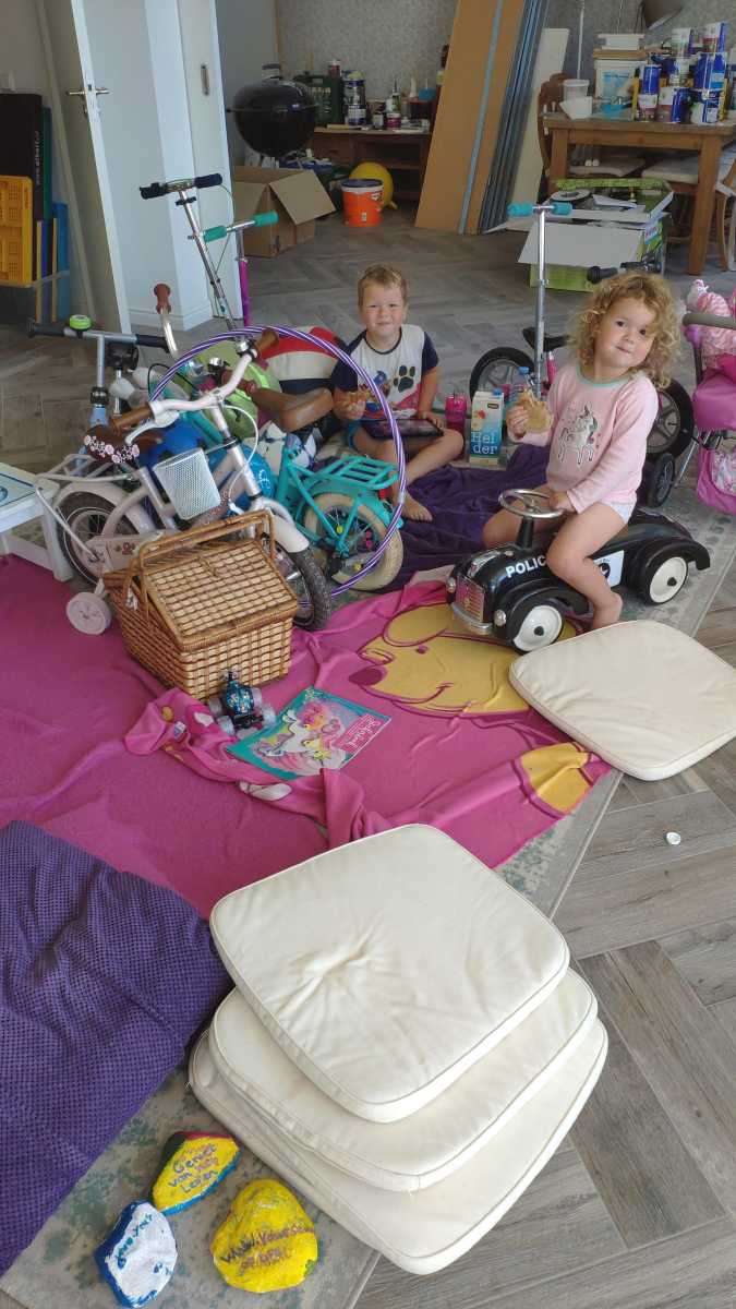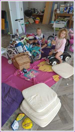 30 juli: We hebben er een bende van gemaakt volgens mama, maar het zijn tenten mama........