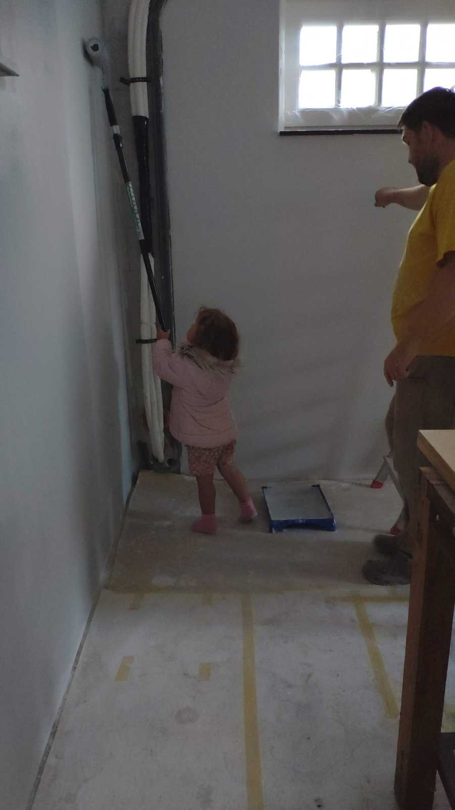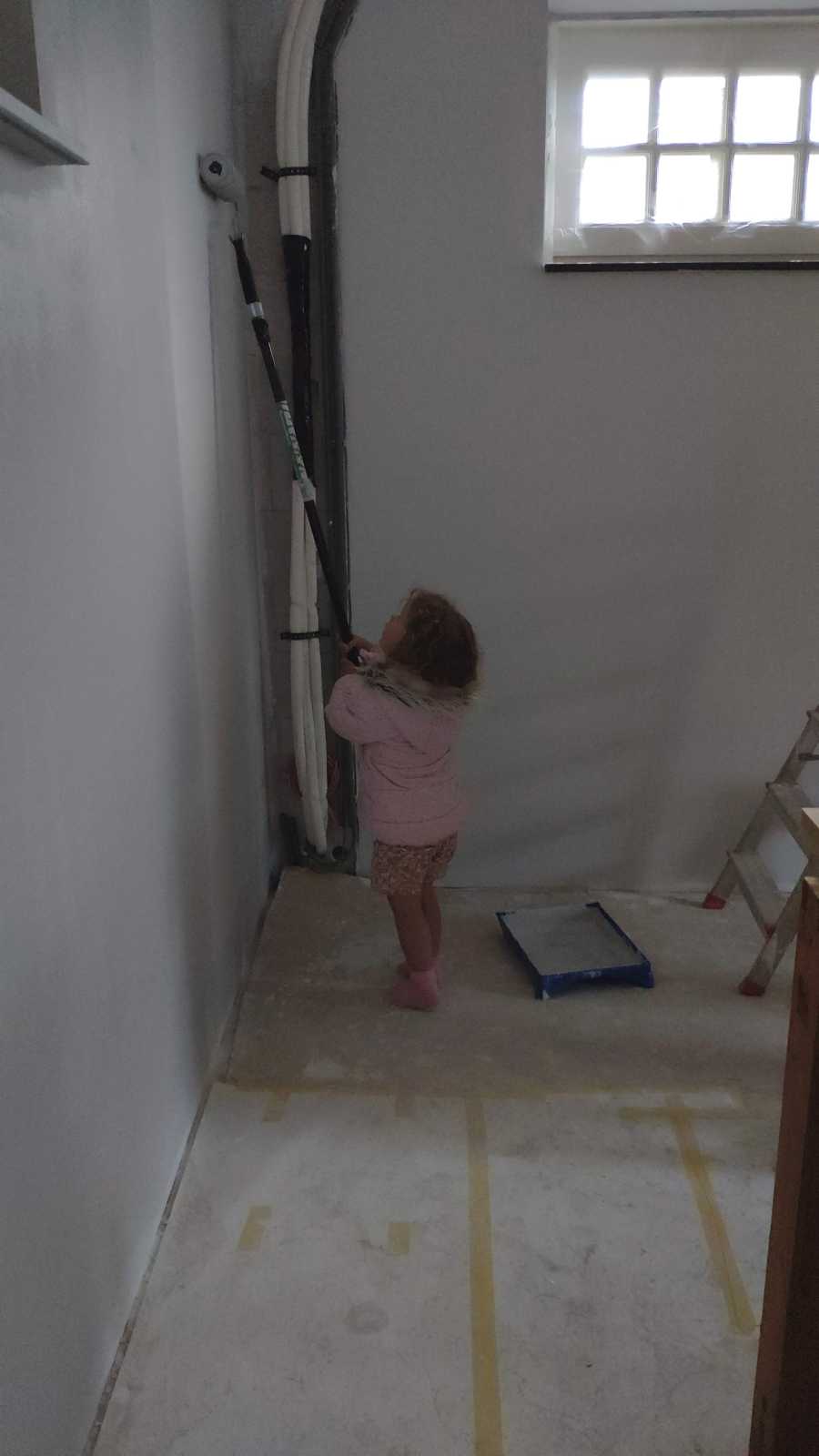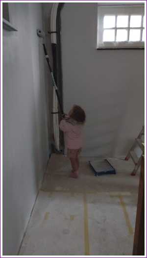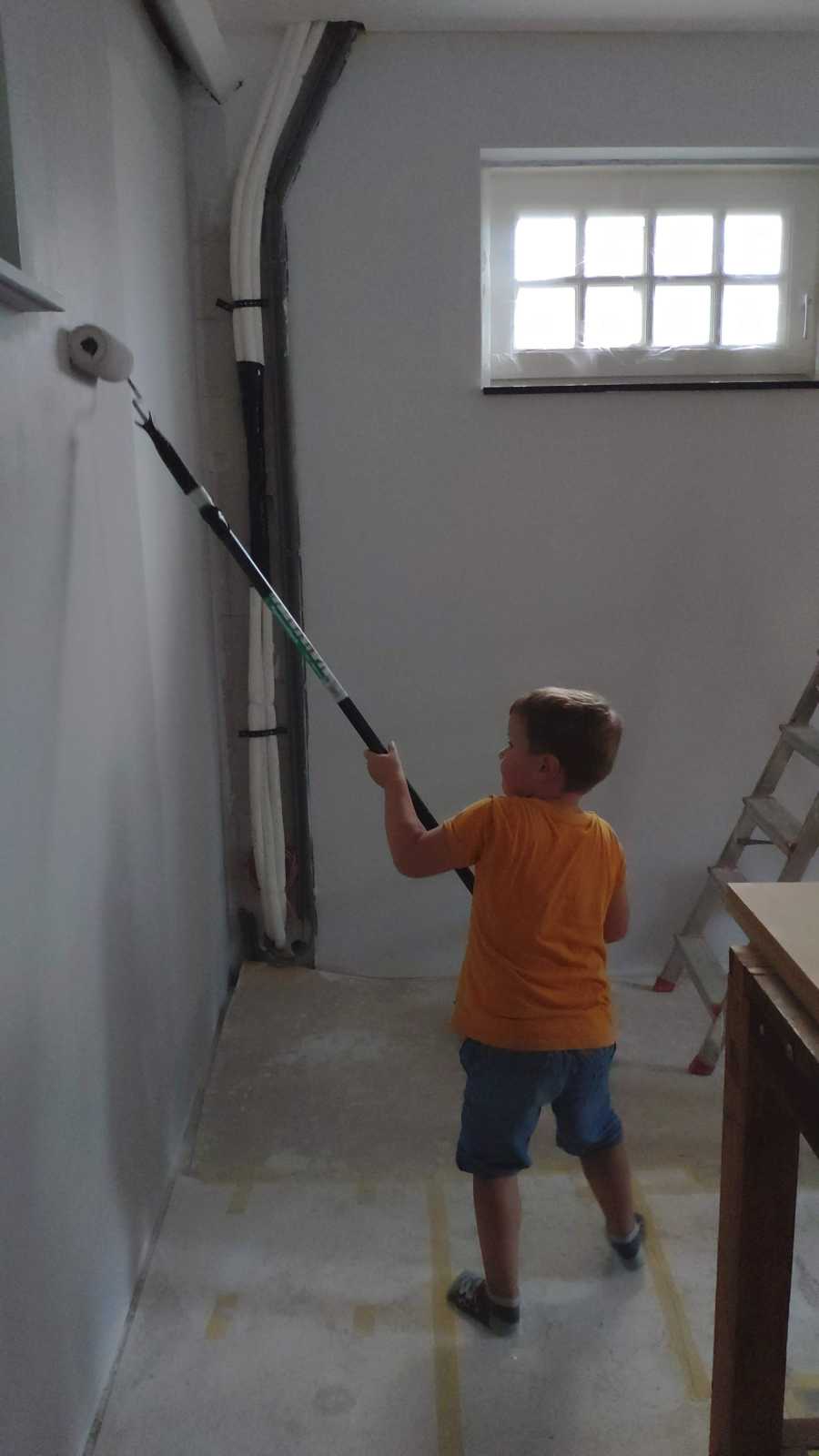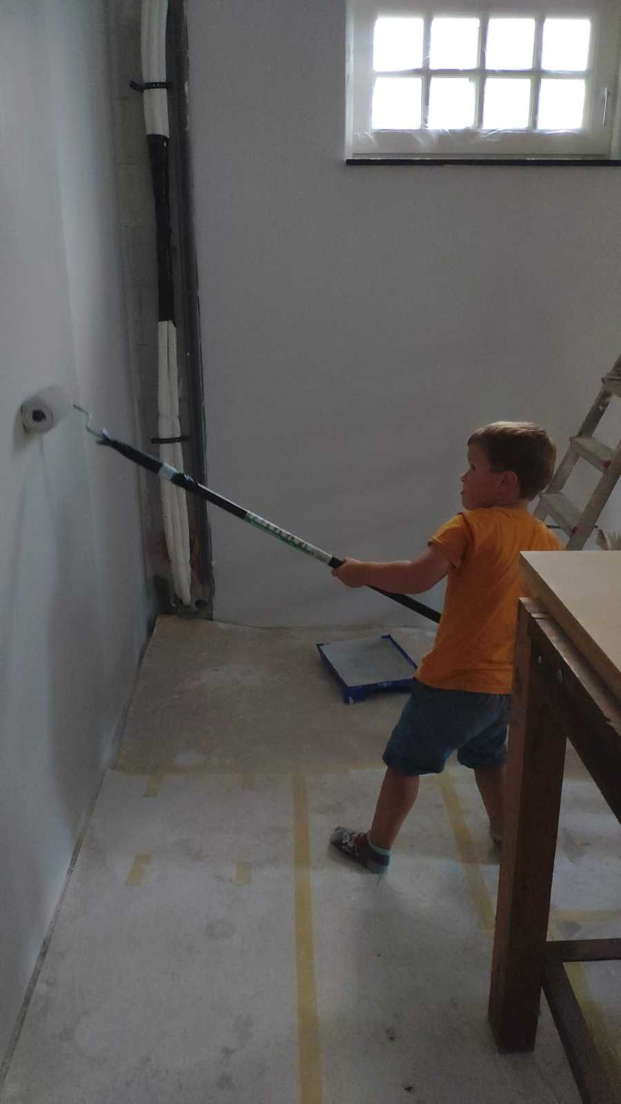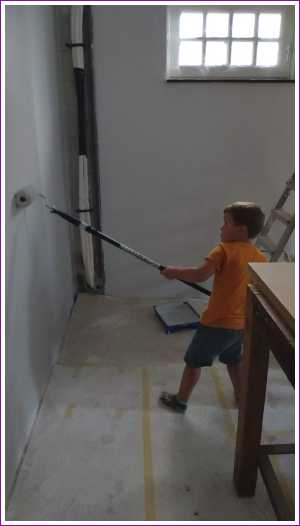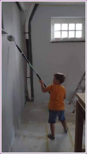 En we mochten ook allebei in de garage even helpen met sausen van de muren.........