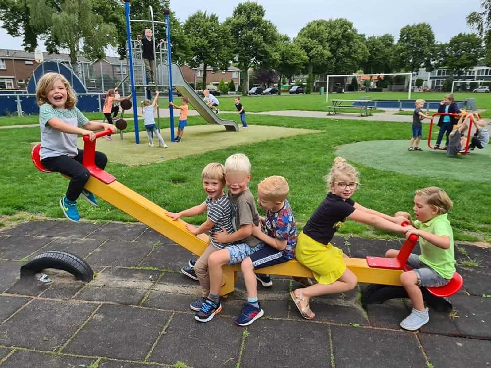 7 juli: Ik heb even met mijn vrienden geposeerd op school.........