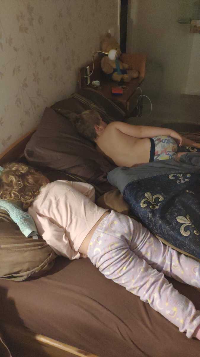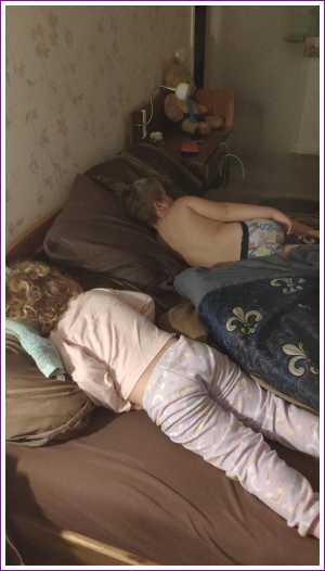 Dat is wel allemaal heel vermoeiend dus 's-avonds lekker gaan slapen. We hadden wel nog even het bed van papa en mama ingepikt.......
