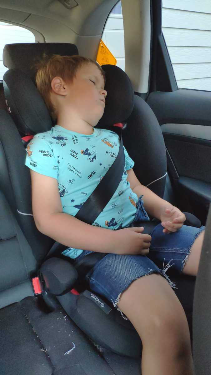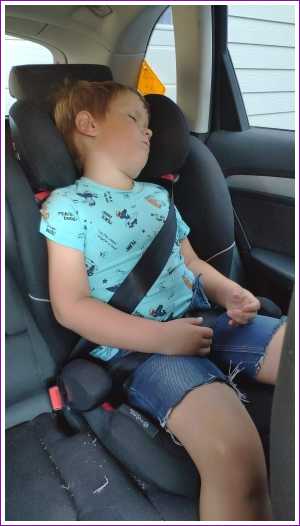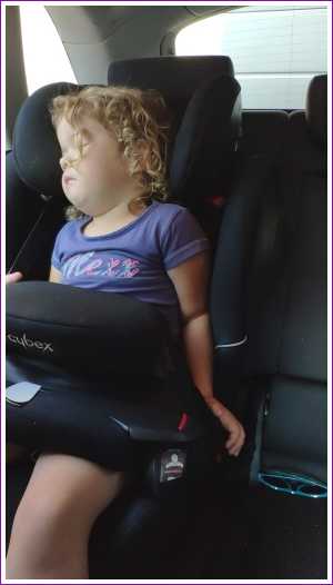 Wel vermoeiend weer, maar gelukkig kunnen we een tukje doen in de auto onderweg naar huis........