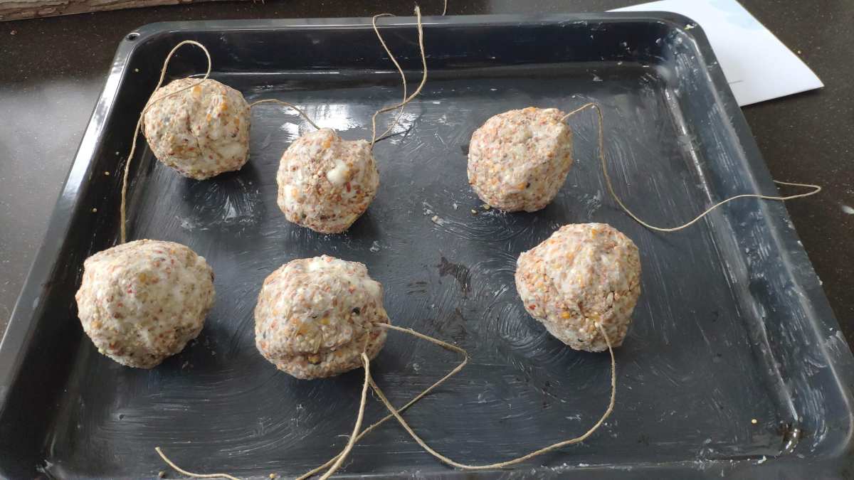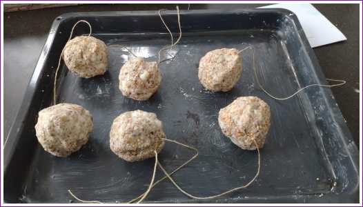 3 januari: We hebben vandaag vetbollen gemaakt zodat de vogeltjes ook wat te eten hebben..........