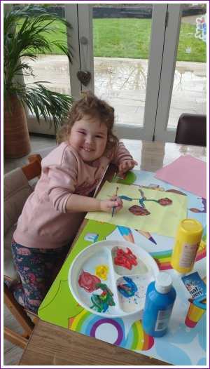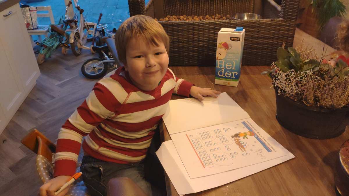 7 januari: Mijn dagen zien er wat anders uit, les via tablet, leerzame spelletje op tablet en schilderen thuis. En ik heb een boek waar ik voetbalplaatjes in kan plakken, das ook leuk.........