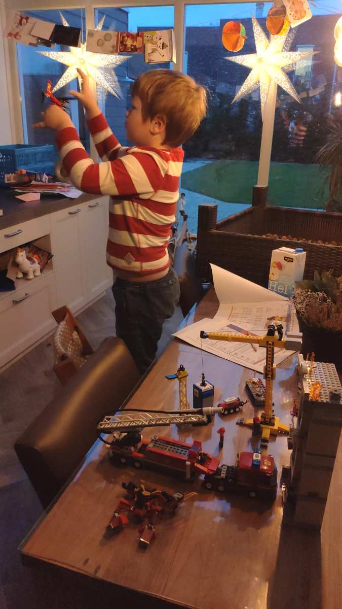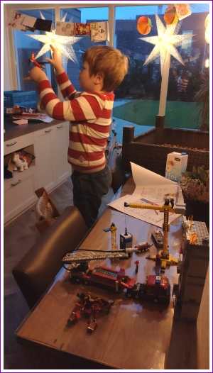 5 januari: Natuurlijk moet ik elke dag schoolwerk maken, maar het is ook heel leuk om met de lego te spelen of met blokken te bouwen op het kleed.........