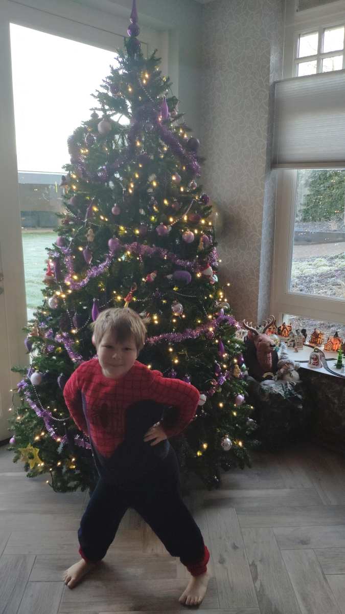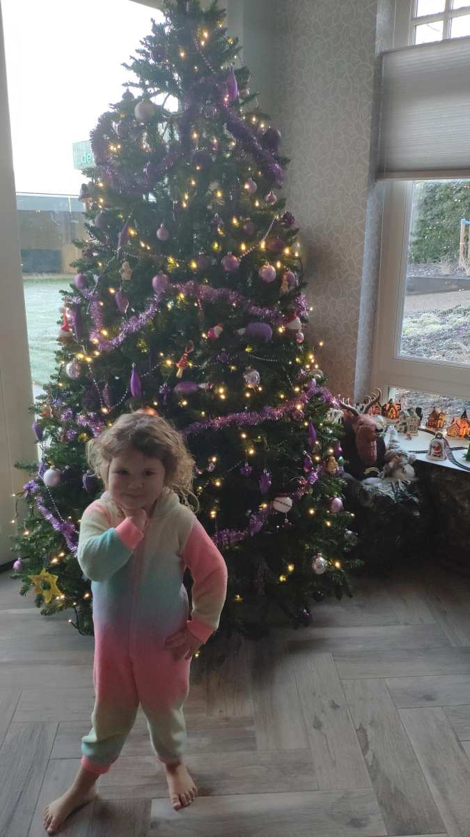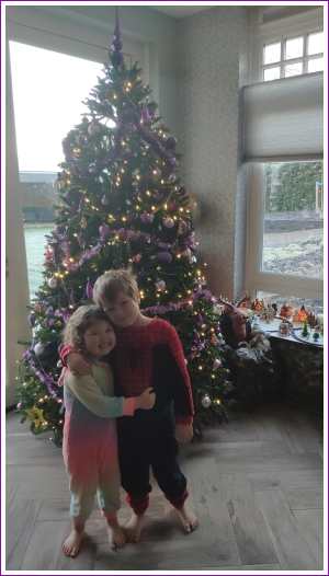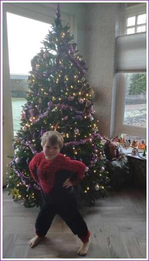 9 januari: We gaan nog één keer met de kerstboom op de foto, daarna moet aller weer worden opgeruimd.........