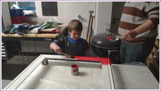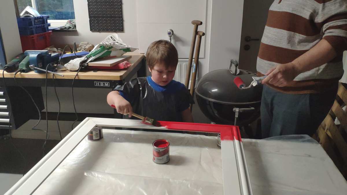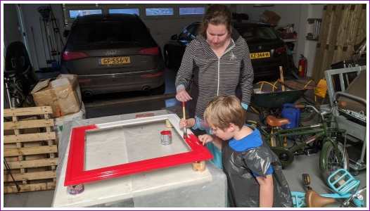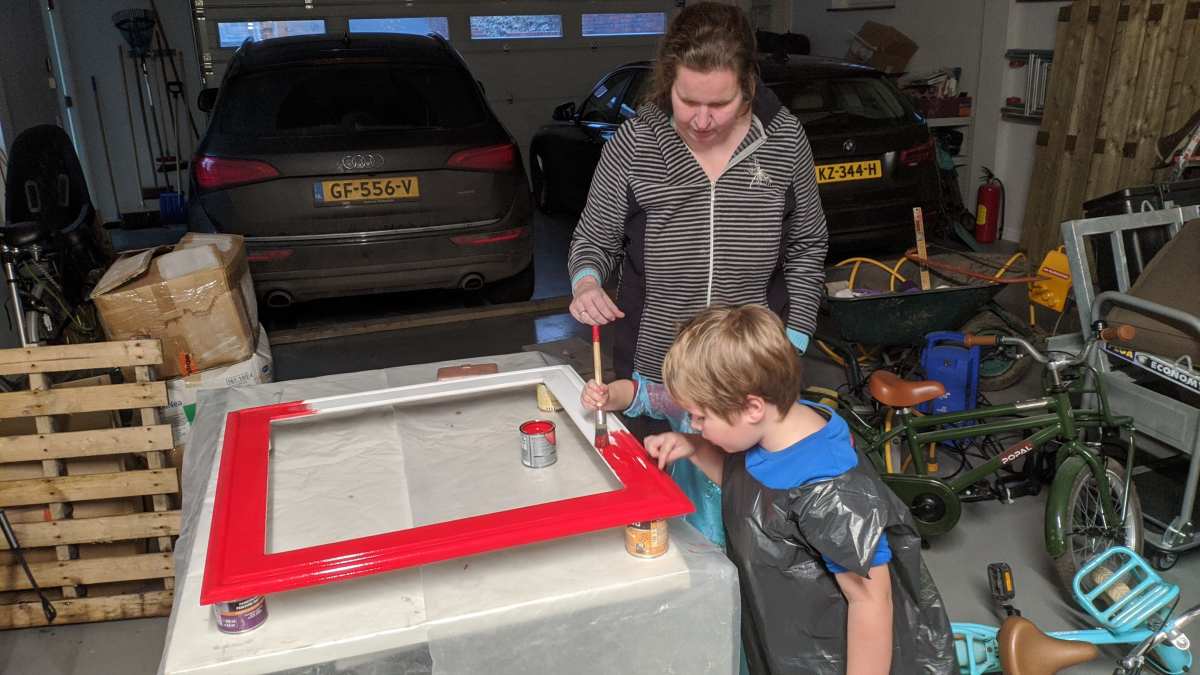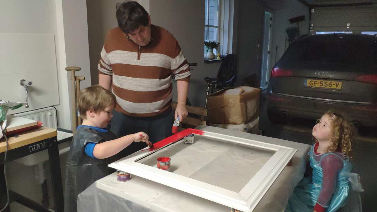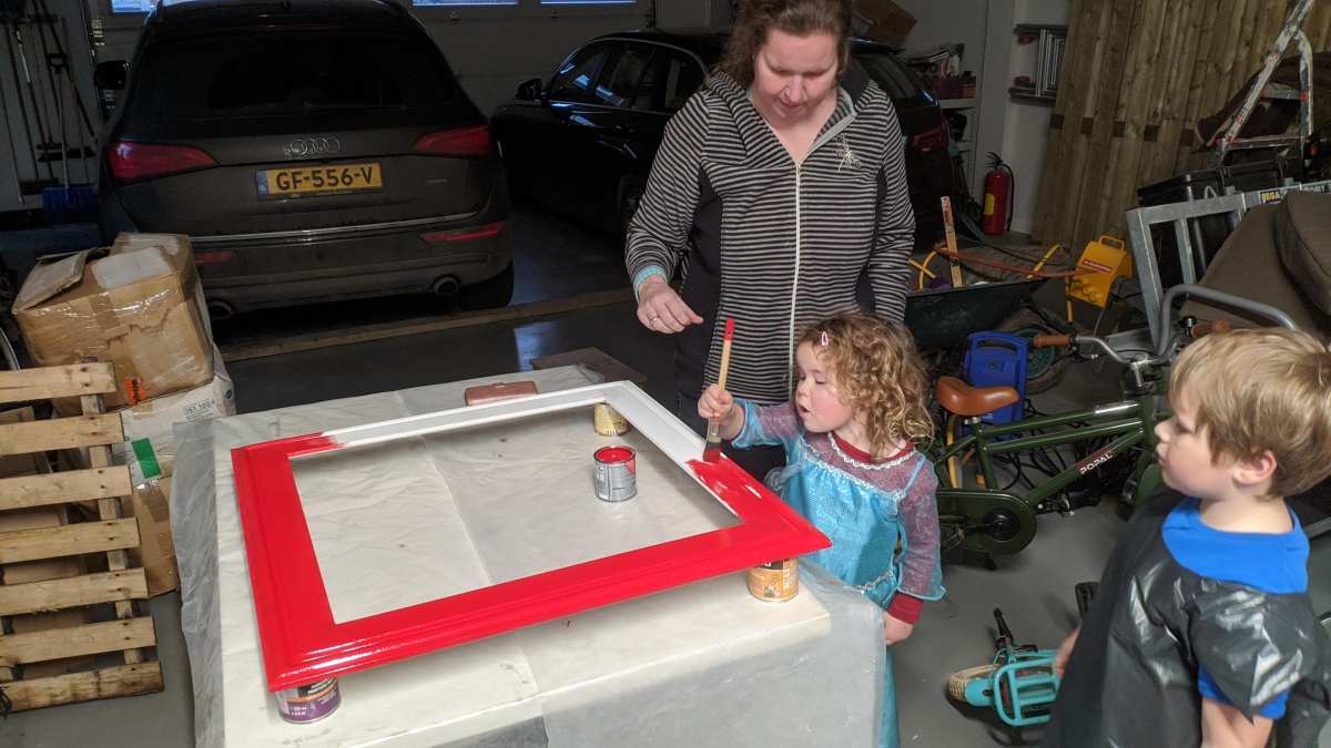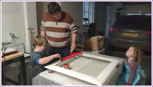 10 januari: Vandaag mocht ik met papa een kader schilderen waar dan een spiegel in gaat komen die op mijn kamer komt te hangen. Ik wilde hem rood hebben en dat mocht, dus ik heb de rand mooi rood geschilderd.........