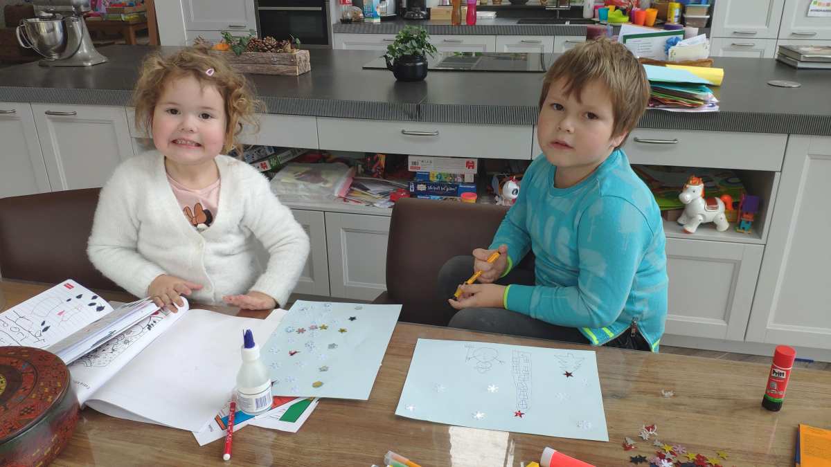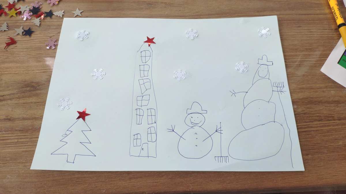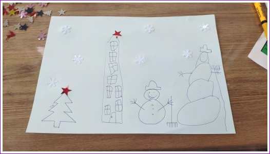 14 januari: Knutselen met tekeningen en lijm doen we ook al graag.........