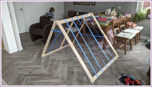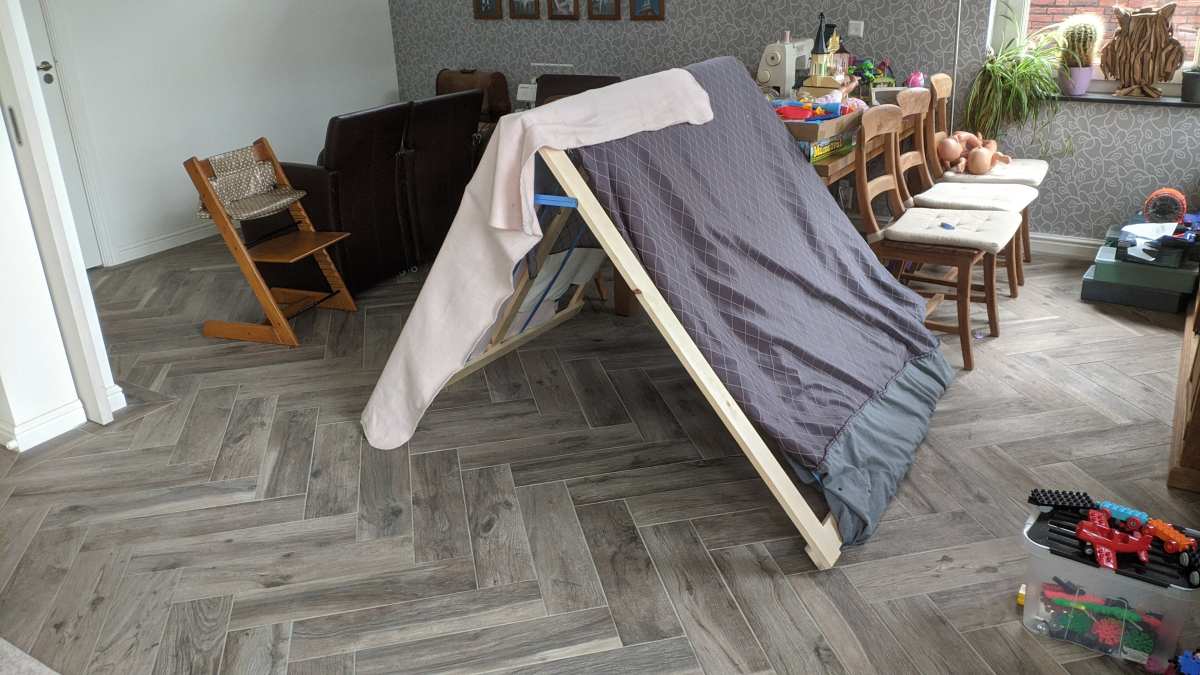 20 januari: Vandaag hebben we met papa een opklapbare tent in elkaar getimmerd waar we dekens overheen kunnen gooien. Zelf gemaakt is altijd het leukste.........