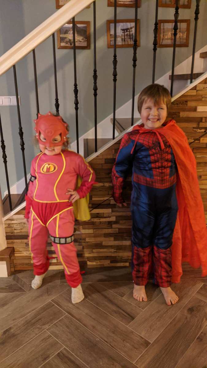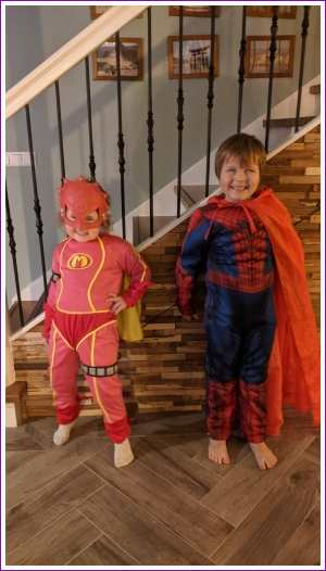 21 januari: Papa heeft via marktplaats verkleedkleding gekocht, nu hebben wij o.a. een Mega Mindy en een Spiderman om aan te trekken.........
