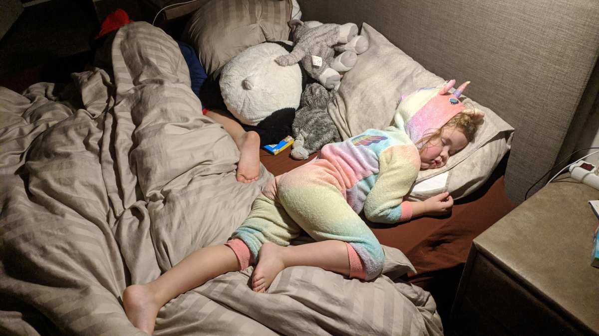 Wel vermoeiend allemaal, dus 's-avonds hebben we papa en mama d'r plekje ingepikt.........