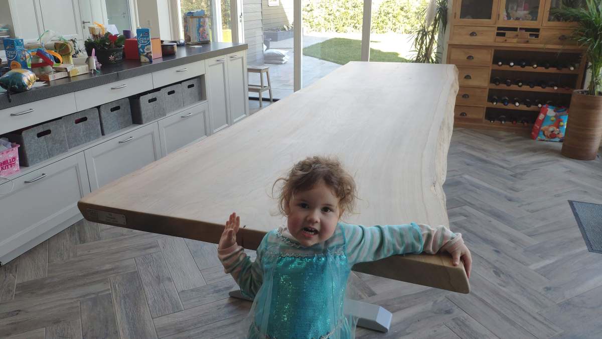 5 maart: Ik heb vandaag gegymt in de sporthal en daarna hebben we ook nog tuinkers geplant in een bekertje. Ondertussen kwam er thuis een nieuwe tafel waar Yfke even mee heeft geposeerd..........