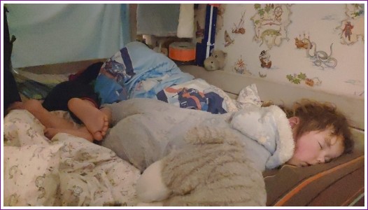 7 maart: Yfke lag vanavond weer bij mij in bed te snurken, veel gezelliger...........