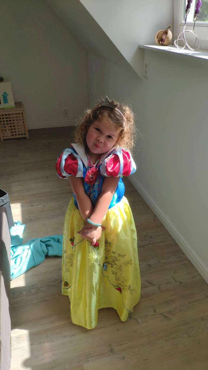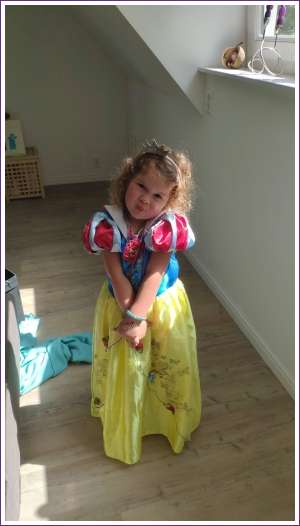 1 augustus: Vandaag hebben we cakejes gebakken, zijn we naar opa en oma geweest en hebben we thuis wat gespeeld. Yfke verkleedde zich als sneeuwwitje.........