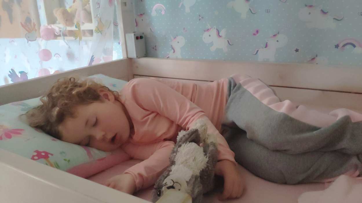 3 oktober: Yfke was stout geweest en moest naar d'r kamer. Maar in plaats van gaan zitten mokken of er over nadenken is een tukje doen veel leuker........