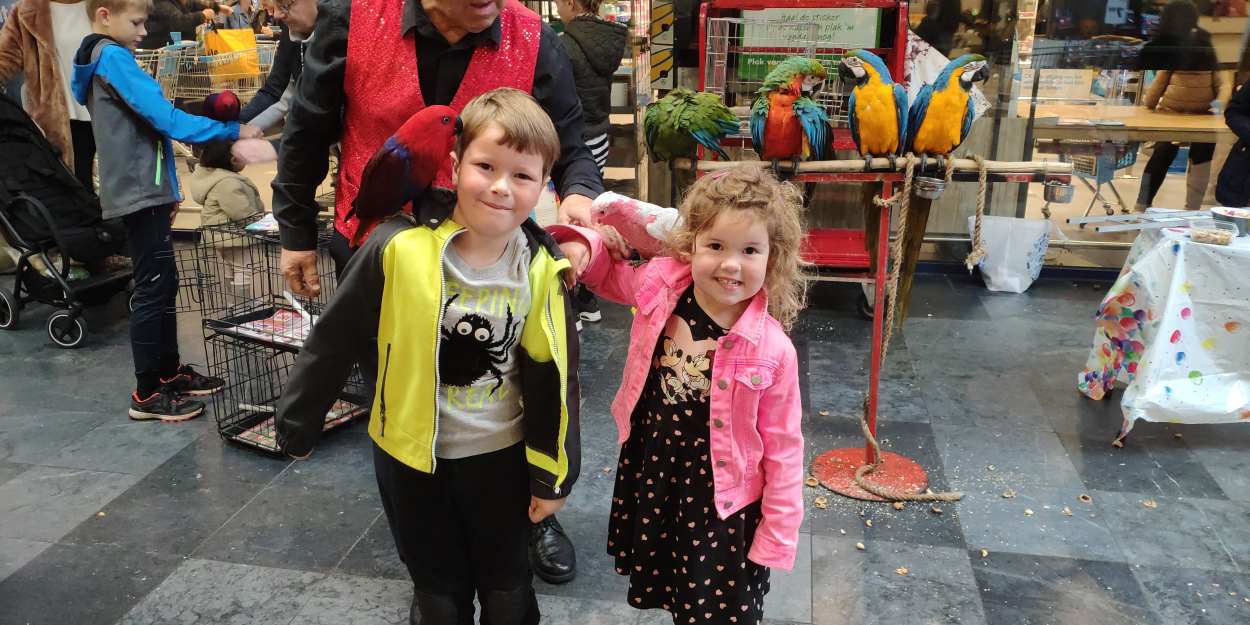 23 oktober: We zijn vandaag met papa bij Carnisseveste geweest waar er een papegaaienshow was. We mochten zelfs een papegaai op onze schouders.