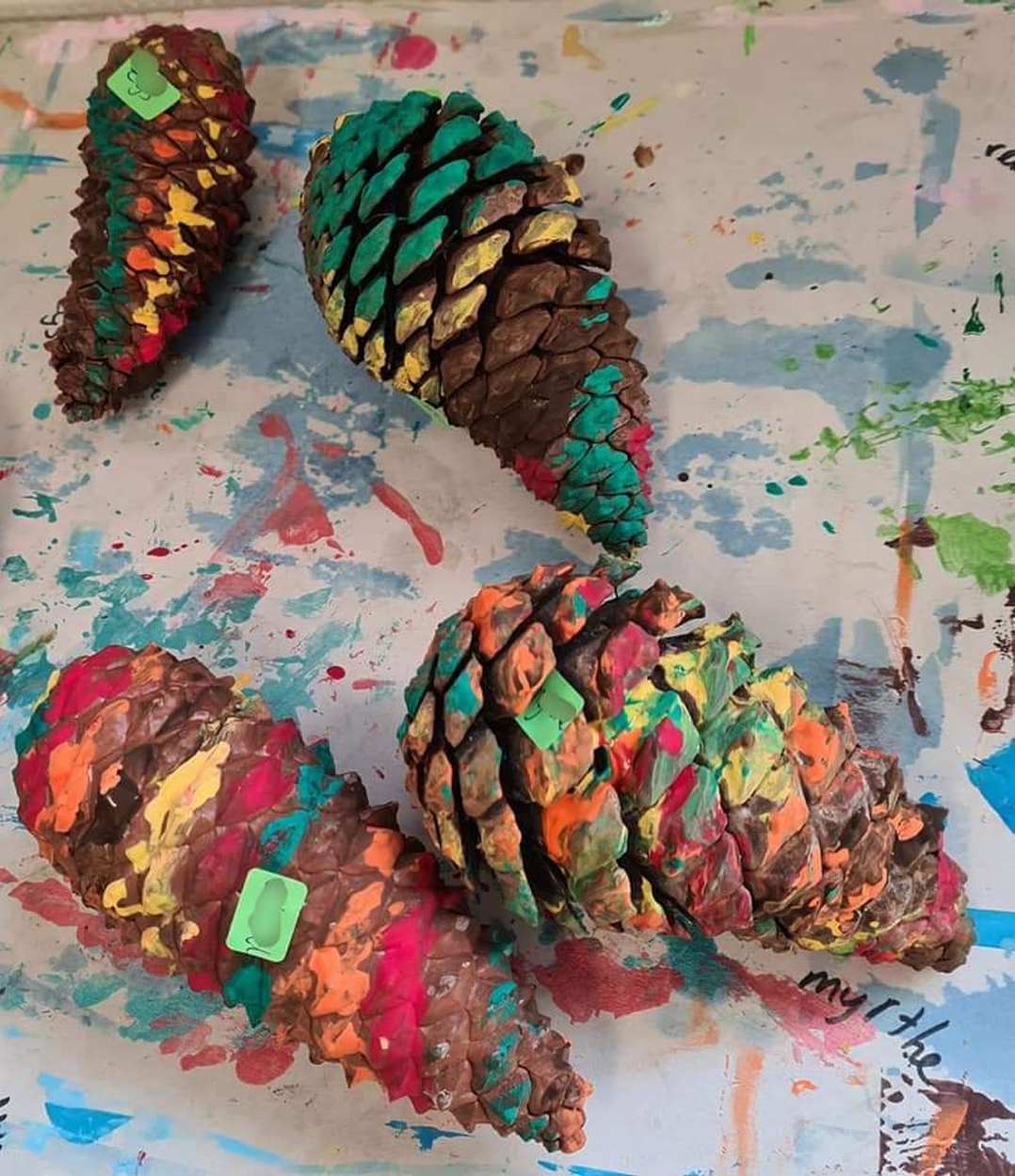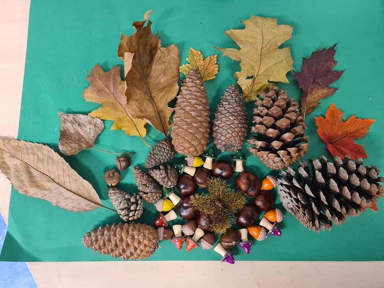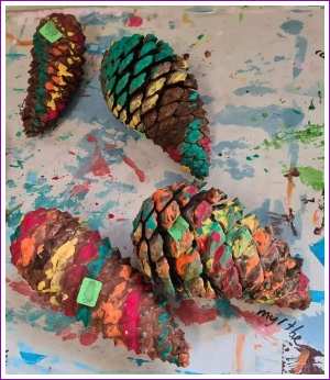 26 oktober: Op school hebben we weer lekker zitten knutselen met denneappels........