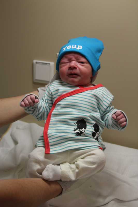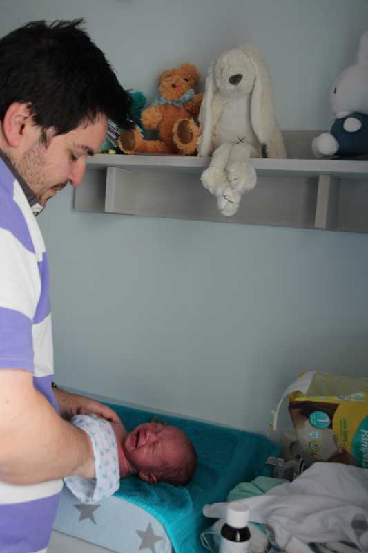 De rest van de middag en avond verliepen relatief goed, langzaam maar zeker kwam er meer ontsluiting. De arts bleef om de paar uur langskomen om de zaak te monitoren. Uiteindelijk was Jantine rond 22.45 zover dat we het laatste stukje in konden gaan. Vanaf 23.00 begon het persen. Uiteindelijk werd Youp na 25 minuten geboren om 23.25.